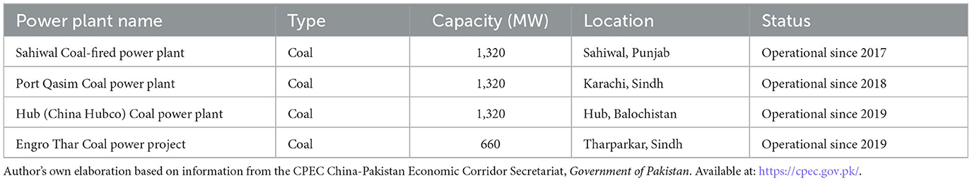Energy collaboration and support has emerged as a key pillar in China–Pakistan bilateral relations, especially under the frameworks of the BRI and the CPEC. The economic corridor was officially established during Prime Minister Nawaz Sharif's inaugural visit in July 2013, marked by the signing of multiple Memoranda of Understanding (Adeney and Boni, 2024). For both nations, this partnership presents a strategic opportunity: it acts as a vital channel to secure energy supplies while simultaneously boosting their geopolitical influence in a region characterized by rivalry and instability, particularly concerning India. This country not only refuses to participate in the BRI but also views the CPEC as a threat to its sovereignty, particularly in the Kashmir region. Between 2015 and 2019, nine power plants were constructed under the CPEC, contributing a total installed capacity of 5,320 MW. By 2025, 14 projects had been completed, bringing the size to 9,504 MW (Malik, 2025). The five most significant plants are highlighted in Table 1.