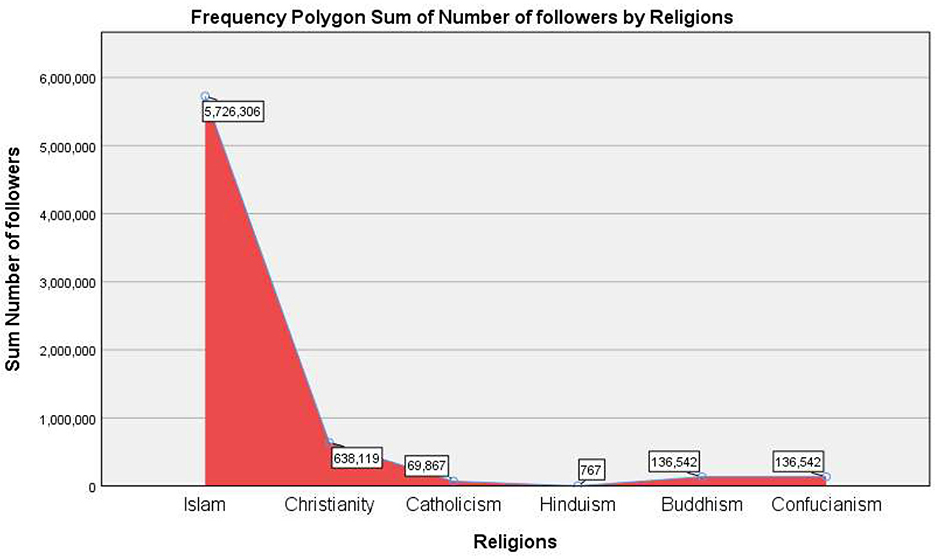Figure 1 these data further illustrate the significant religious plurality in Riau, despite substantial numerical disparities between Islam and other religions. These figures demonstrate the homogeneity of religious identity at the regional level, with Islam accounting for nearly 90% of the religious demographic, followed by Christianity in second place. This proportion underscores Islam's significant influence on the province's socio-cultural dynamics, while also highlighting the presence of other relatively small but essential religious communities in shaping the region's multifaceted cultural identity. These demographic patterns are crucial for understanding religious cohesion and diversity in Riau, which can have implications for policymaking, interfaith dialogue, and community relations.