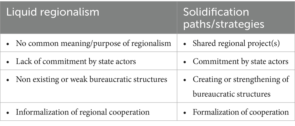 According to Mariano et al. (2021, 7) their objective “is not just to establish a new concept (liquid regionalism), but also to adjust the analysis criteria to the current reality in the Americas, thus presenting a conceptual categorization that assists in creating a better understanding of regional processes on the American continent.” The question arises as to whether the concept lives up to this claim, what adjustments and additions may be appropriate and what paths there are to “solidify” Latin American regionalism.