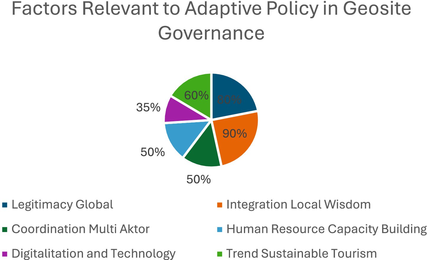 The Figure 5 that the local wisdom of the Toba Batak people is considered highly relevant and dominant in supporting geosite governance. Values such as mutual cooperation (marsiadapari), habonaron do bona (truth as the basis), and customary practices in natural resource management are important instruments to ensure that tourism development aligns with local cultural identity (Siallagan et al., 2024; Octavianna et al., 2020). The research results confirm that the success of geosite management is largely determined by social legitimacy and local community support. This finding aligns with research (Ballesteros et al., 2022; Briggs et al., 2022; Zwang, 2019) which emphasizes that sustainable geopark management cannot be separated from the role of local communities as knowledge holders and the importance of global legitimacy in expanding access to international networks. However, this research provides a new emphasis that in the context of the Toba Caldera, local wisdom is more dominant than global legitimacy, in contrast to the case of geoparks in China or Europe which place more emphasis on UNESCO international standards (Pariwisata, 2025).