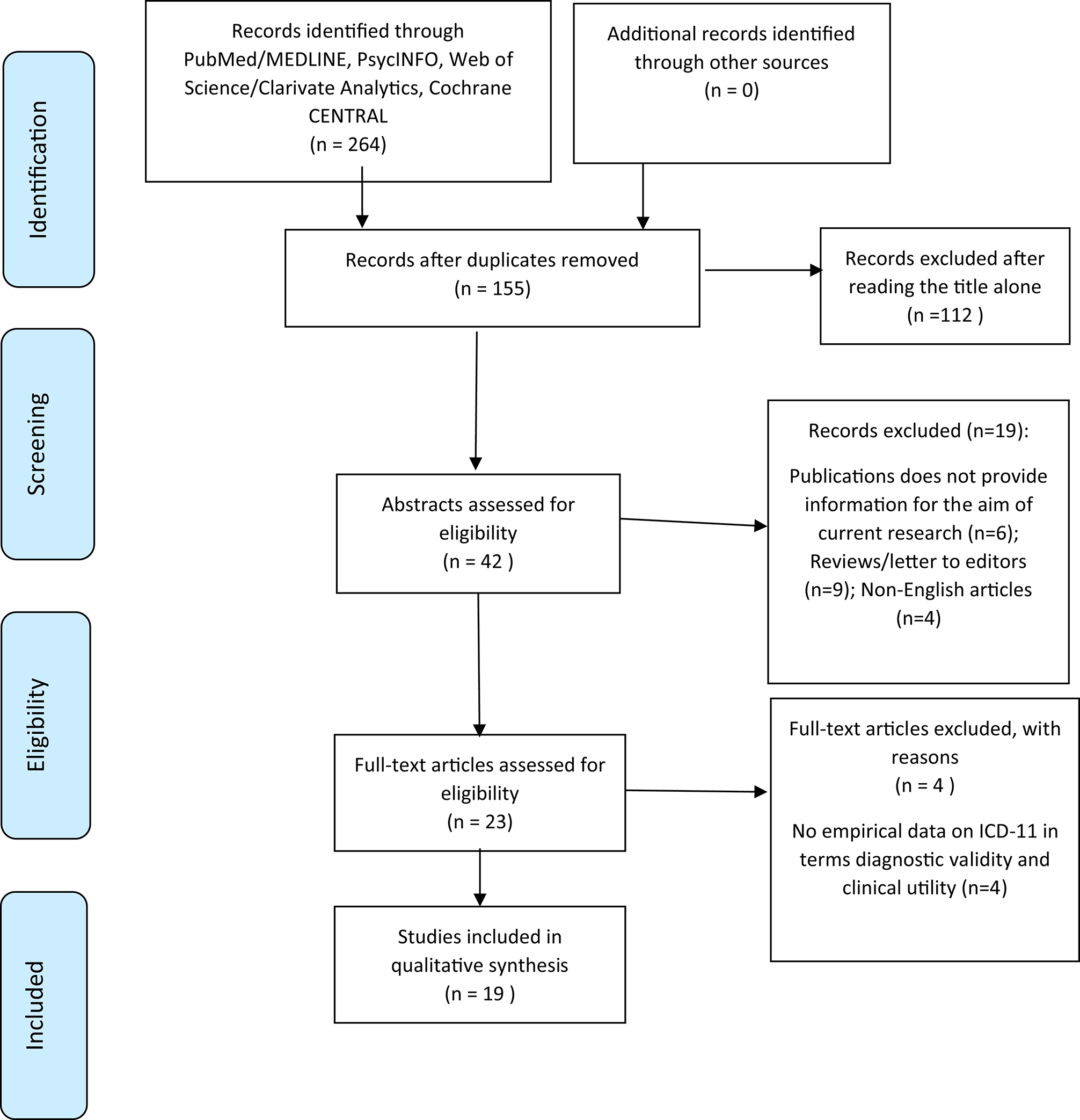Results: Out of the 264 publications identified, 19 articles were included in this review. Four themes were identified, namely (a) overlap of DSM-5 OCPD with the ICD-11 PD model, (b) the factorial structure of the ICD-11 PD model with respect to the anankastia domain, (c) the clinical utility of the ICD-11 PD model, and (d) comparison of the ICD-11 PD model of anankastia with the DSM-5 alternative model for OCPD.