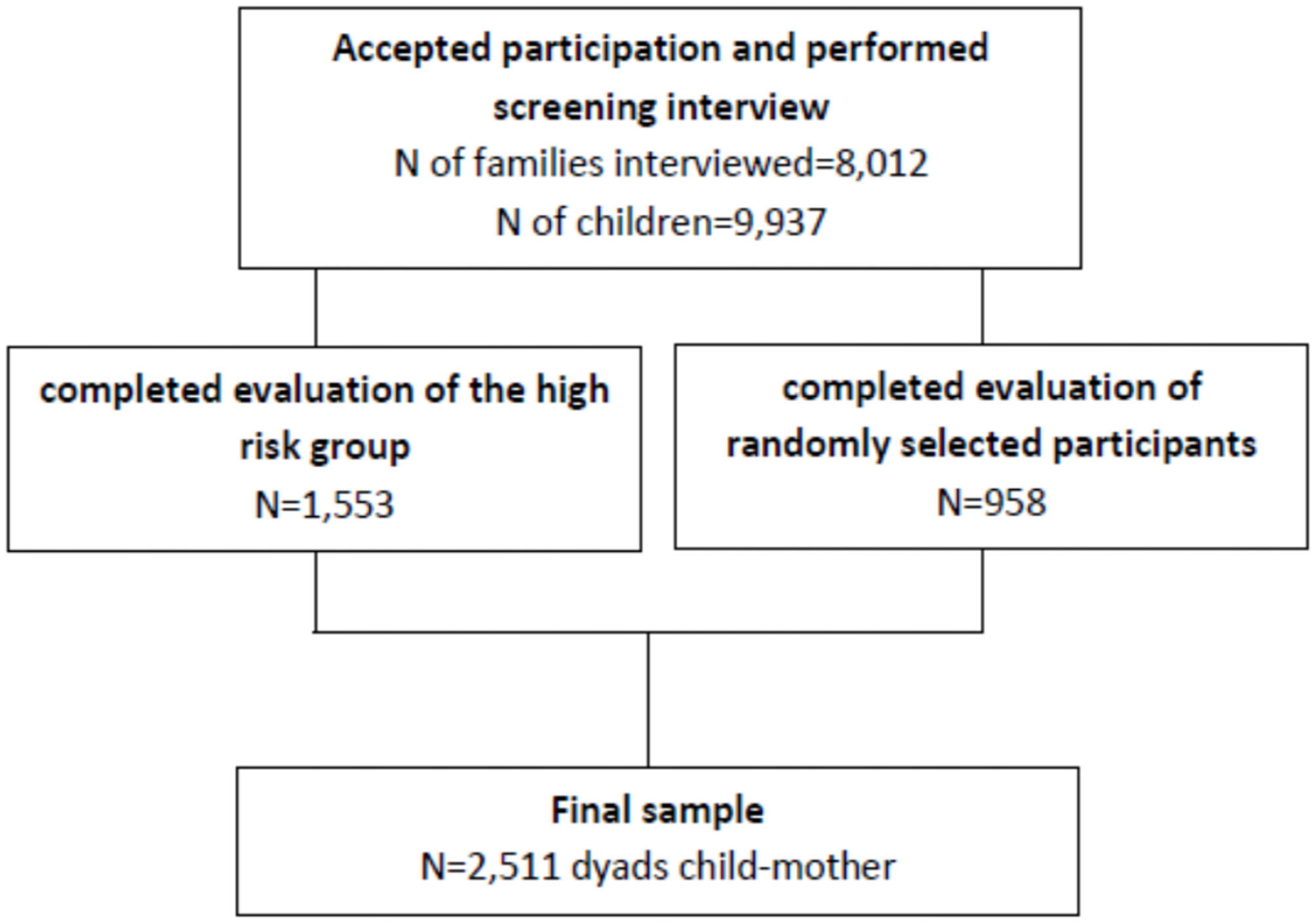 Participants were 2,511 mothers and their children from a large community school-based cohort from the INPD (Figure 1).