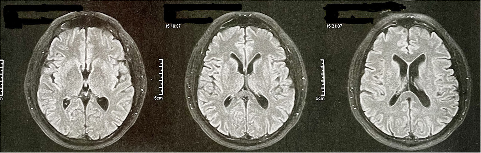 Initially, the behavioral variant of frontotemporal dementia (bvFTD) was considered, as it is a common cause of young-onset dementia. In addition, it has relevant characteristics related to behavioral and personality changes (23, 24). Yet, in addition to not meeting the minimum criteria established by the International Behavioral Variant FTD Criteria Consortium (25), the patient had severe impairments in cognitive domains—such as memory and spatial disorientation—from the beginning, which are considered exclusion criteria for bvFTD (24). The speech alterations presented by the patient during the evaluation also stood out, leading to an investigation of the linguistic variants of FTD. As the neuropsychological results did not identify significant losses in the domain of language, and as the cognitive and behavioral changes were very prominent from the beginning—and being this is a less intense characteristic in the linguistic variants of FTD—we discard this possibility. Finally, FTD was discarded because the image examination does not indicate any type of cortical atrophy (Figure 2).