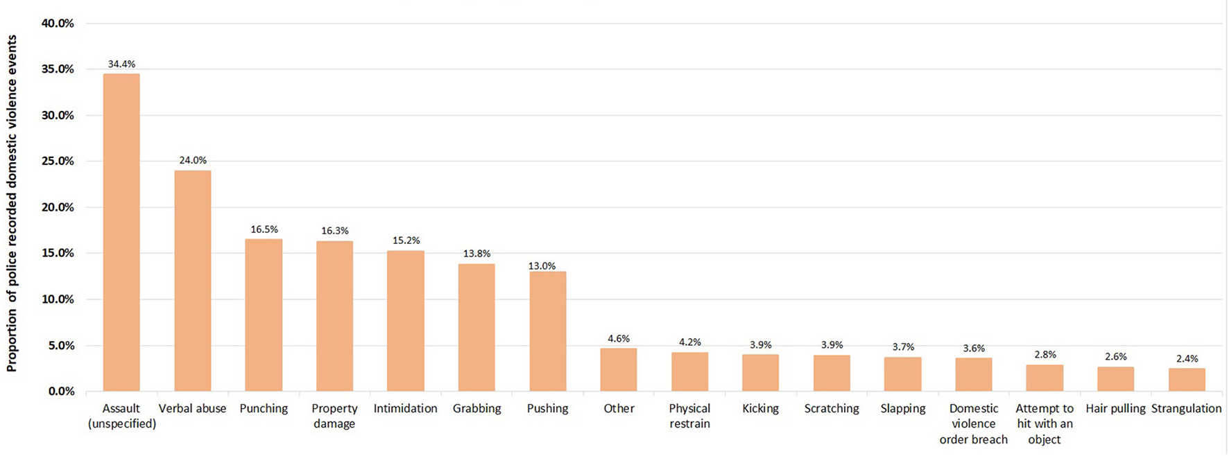 Proportion of abuse types in 353,161 police recorded domestic violence events that occurred in residential premises in NSW, January 2005–December 2016.