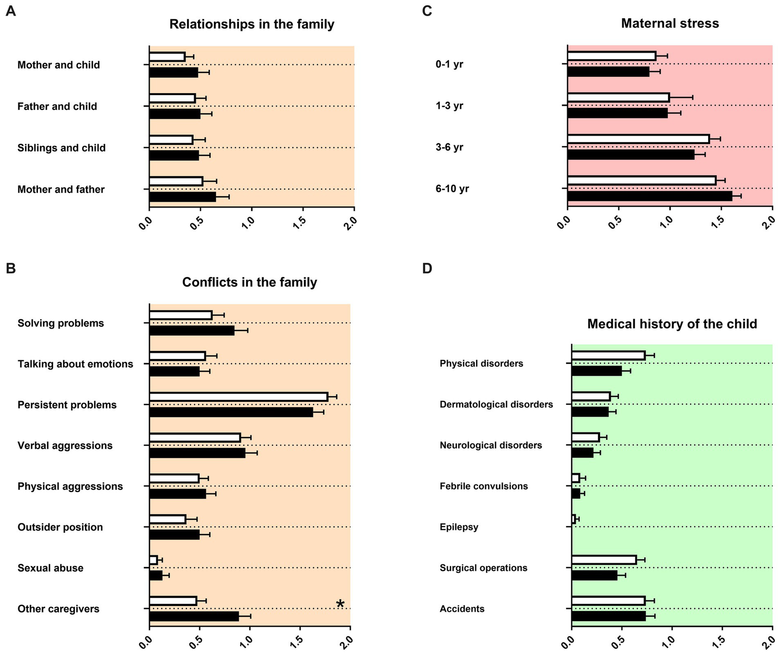 Parents and interviewer met for an agreed appointment. Family and developmental history data were collected from at least one parent. Modeling a clinical setting, participant and interviewer were seated face-to-face in an examination room of the hospital. The interviewer asked the questions in the same order as they can be found in Supplementary Table S1 and documented answers of parents word-by-word.