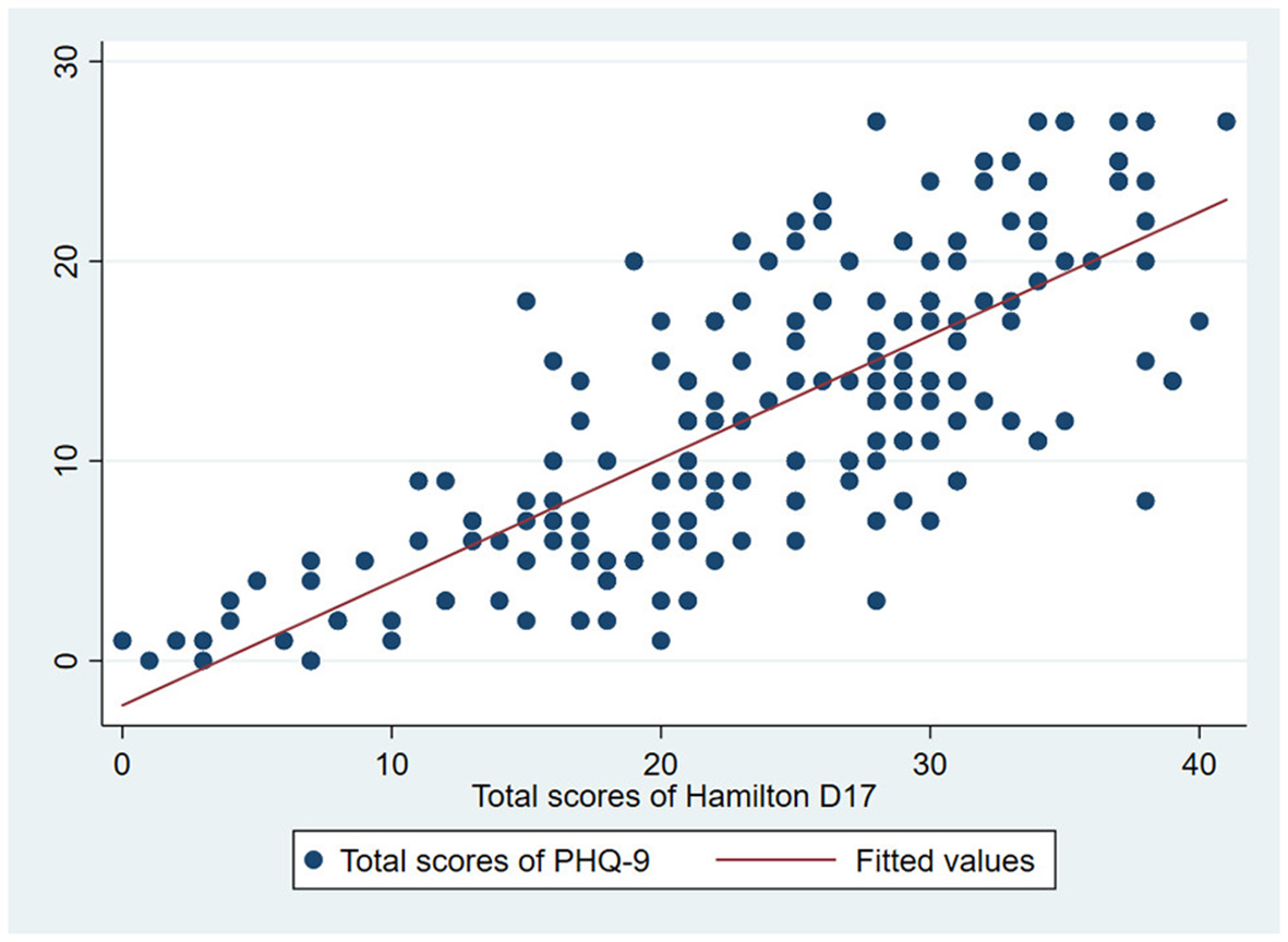 All 183 patients underwent a face-to-face interview by a general psychiatrist to complete a pre-defined questionnaire which contained the Hamilton D-17 and the PHQ-9. Data from these interviews were used to evaluate internal consistency, construct validity and concurrent validity. A total of 70 patients were then randomly selected to undergo a second interview with another general psychiatrist to complete the Hamilton D-17. Data from the second interview were used to evaluate inter-rater reliability.