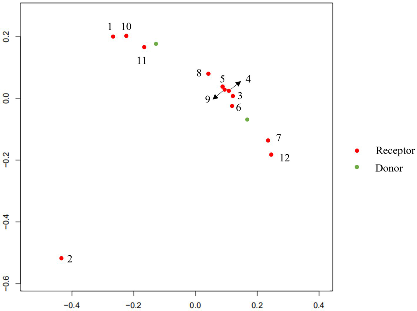 PCA analysis at different periods of transplantation in Doner and Receptor.