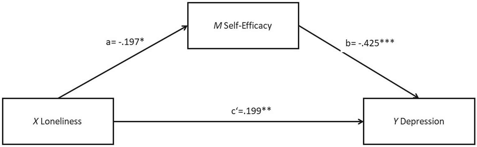 Hypothesis 3: Self-efficacy mediates the relationship between loneliness and depression.