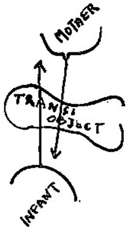 Winnicott associates transitional objects and transitional phenomena with the realm of illusion, which plays a fundamental role in the infant’s initiation of experience. He claims that the transitional phenomena signify the initial phases of the use of illusion, which is crucial for the individual to establish a sense of relationship with an external object. Without the illusion, there would be no meaning in such a relationship (6). Furthermore, Winnicott emphasizes that the ability to use transitional objects depends on a good enough mother. Winnicott illustrates his ideas by the following two figures, Figures 1, 2 (6). Figure 1 states that a good-enough mother’s adaptation to the infant’s needs gives the infant the illusion that he can create what he needs. Psychologically, the infant takes the mother’s breast as part of himself, and the mother gives him milk is also part of himself. That is to say, this early stage in the development of the individual becomes possible by the mother’s ability to adapt to the infant’s needs, enabling the infant to have the illusion that what he creates does exist. In psychology, the interchange between mother and infant is based on an illusion (6). As the infant grows, the mother’s main task is to provide disillusionment, which means the task of weaning. If things go well, weaning is the process of gradual disillusionment, the stage of frustration for the infant. The complex reaction of weaning is actually the illusion-disillusionment process that the infant undergoes. In experiencing the frustrations, the infant forms a conception of external reality. Figure 2 gives a shape of the area of illusion, to illustrate what Winnicott considers to be the main function of the transitional object and the transitional phenomena. It illustrates how the region of the illusion is transformed into a definite form of a transitional object, which illustrates the main mechanism for the formation of transition objects and transition phenomena as the individual develops. Winnicott points out that, the transitional object and the transitional phenomena prove to be very important for each human being (6). He also argues that the use of the transitional object and the process of transitional phenomena are not limited to childhood but could also occur in adulthood, particularly in the context of psychotherapy.