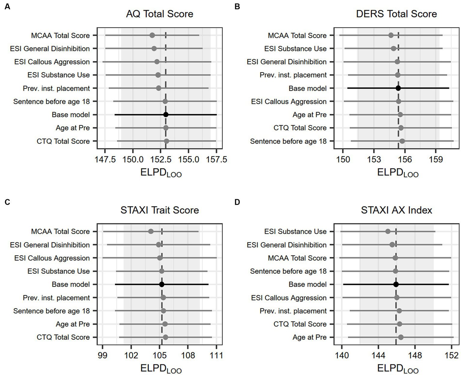 We investigated the impact of potential confounding factors separately by including each potential confounder as a covariate for each outcome. The leave-one-out cross-validated expected log predictive density (ELPDLOO) (78); was then used to quantify and compare model fit. The relative model fit measure ELPDLOO provides an estimate of predictive accuracy for the model’s out-of-sample fit compared to another model fit on the same data, but with a different set of variables. We multiplied obtained values by 1, so that lower values of ELPDLOO indicated better model fit. Differences in ELPDLOO of <4 points are generally considered unreliable and of no clear predictive advantage, thus favoring the least complex model (79).