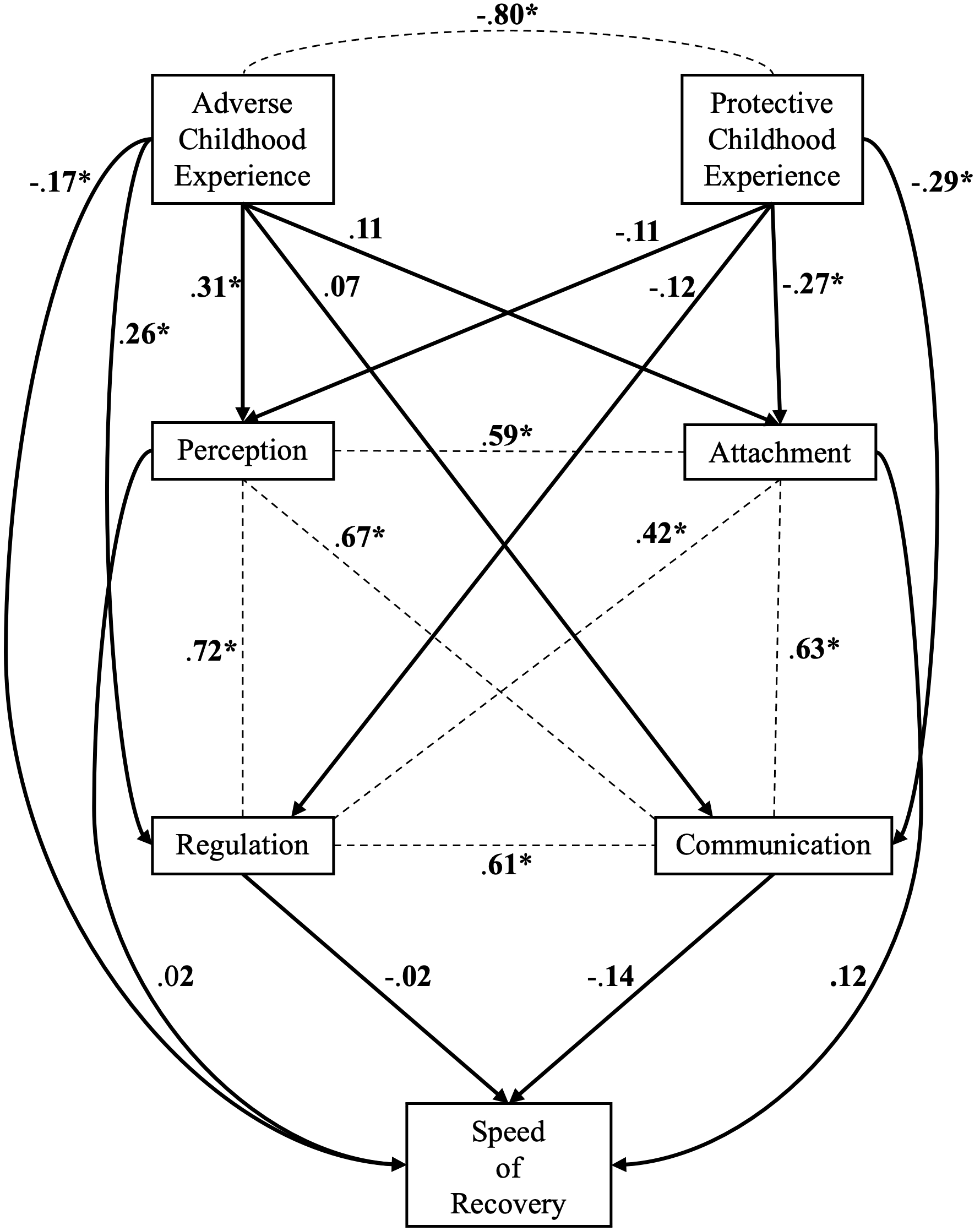 Methods: The sample consisted of n = 312 completed psychotherapies. The speed of recovery, defined as symptom abatement over time, was calculated using a two-stage hierarchical linear model. The effects of adverse and protective childhood experiences as well as personality functioning on the speed of recovery during psychotherapy were then examined using a structural equation model.