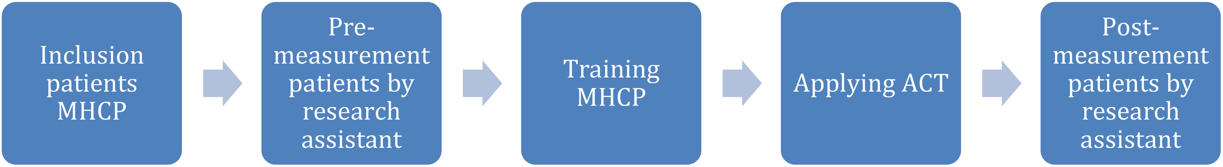 Methods: An RCT with a 2 (pre-test/post-test) x 2 (no training/training) design was conducted. A total of 41 MHCPs participated, 20 were randomized to the experimental and 21 to the control condition respectively. The MHCPs in the experimental condition received an ACT-based training, MHCPs in the control condition received no training. From every MHCP, one of their patients participated in the pre- and post-measurement. As the primary outcome, patients’ awareness, agreement, application and hurt-self, was measured using the Self Stigma of Mental Illness Scale - Short Form (SSMIS-SF), before and after the MHCPs’ ACT-based training.