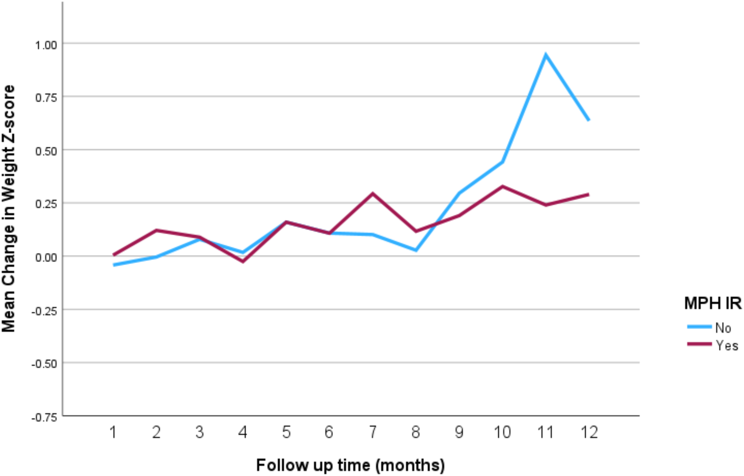 Impact of methylphenidate immediate release on weight over a 12-month period. MPH IR, methylphenidate immediate release.