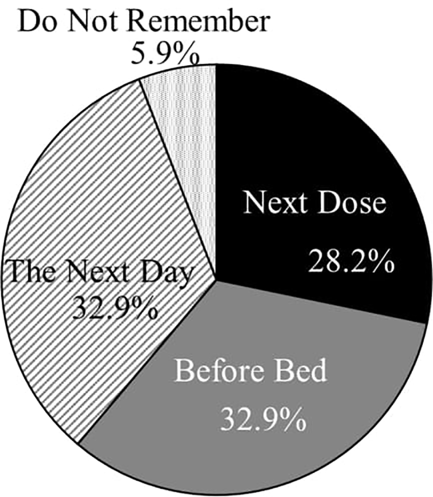 The timing of remembering missed medications (n = 85).