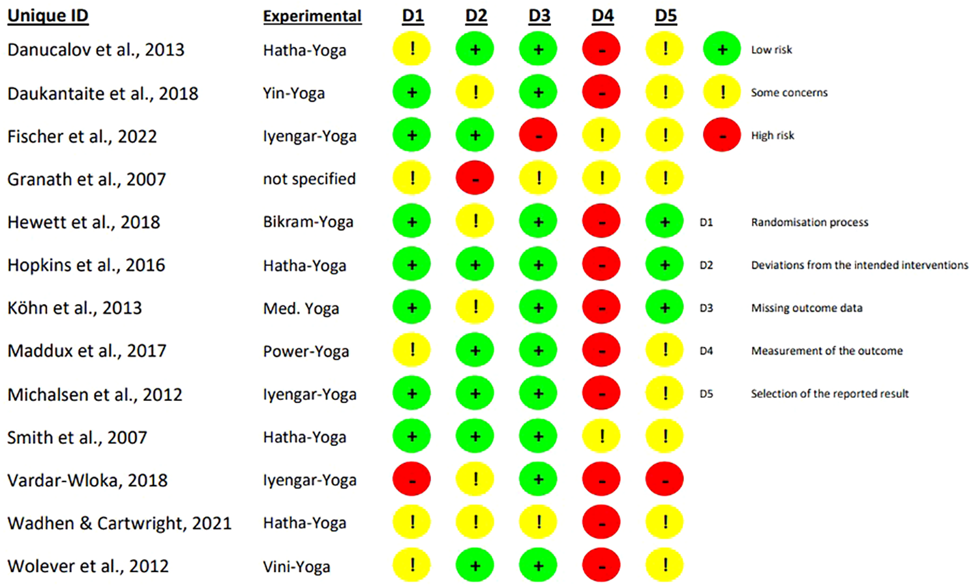 Types of interventions: The intervention could be any form of yoga (i.e. Hatha yoga, Ashtanga yoga, Iyengar yoga, yoga therapy or any other form of yoga). Studies were also eligible if they did not mention a specific form of yoga, but simply described the intervention as ‘yoga’. Studies were excluded if yoga was not the main intervention, but was part of a multimodal intervention.