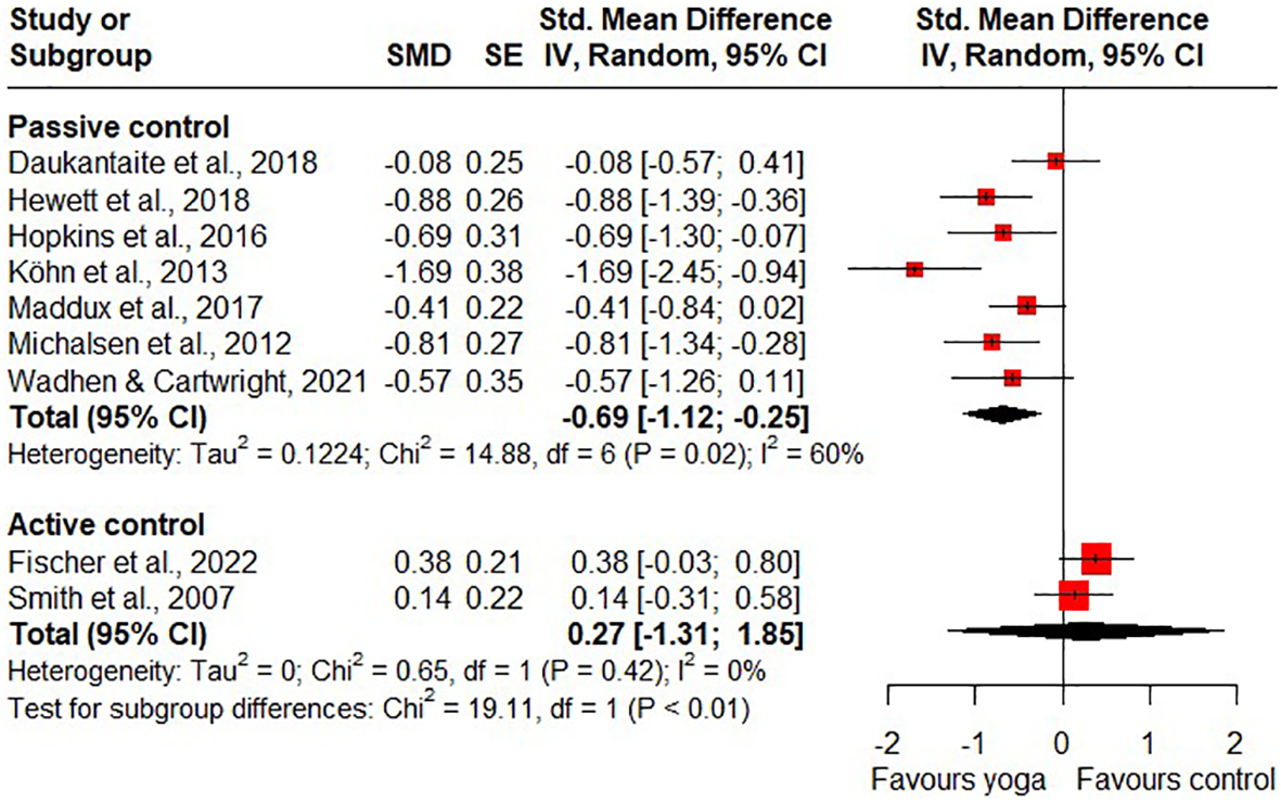 Types of comparisons: Studies were eligible if they compared yoga to passive controls or any active control.