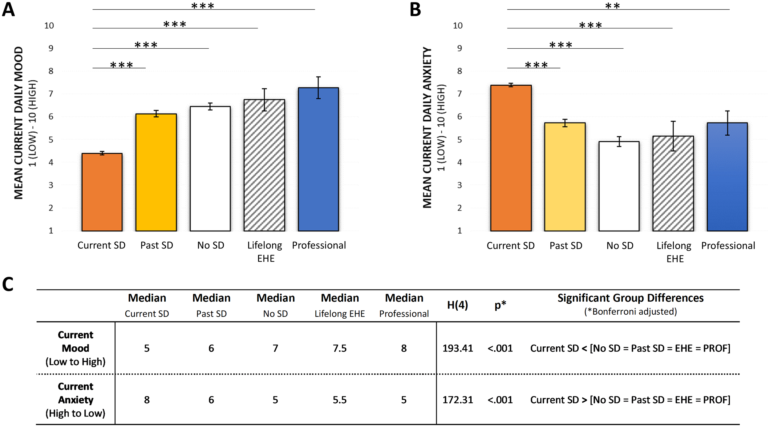 | Characteristic | Current SD | Past SD | No SD | Lifelong EHE | Professionals |