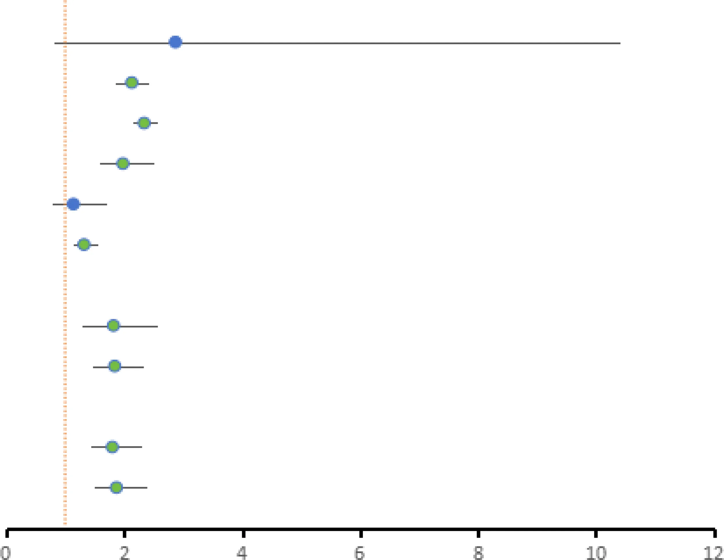 | From 28 countries | 1 | 2.13(1.85,2.46) | — | — | |