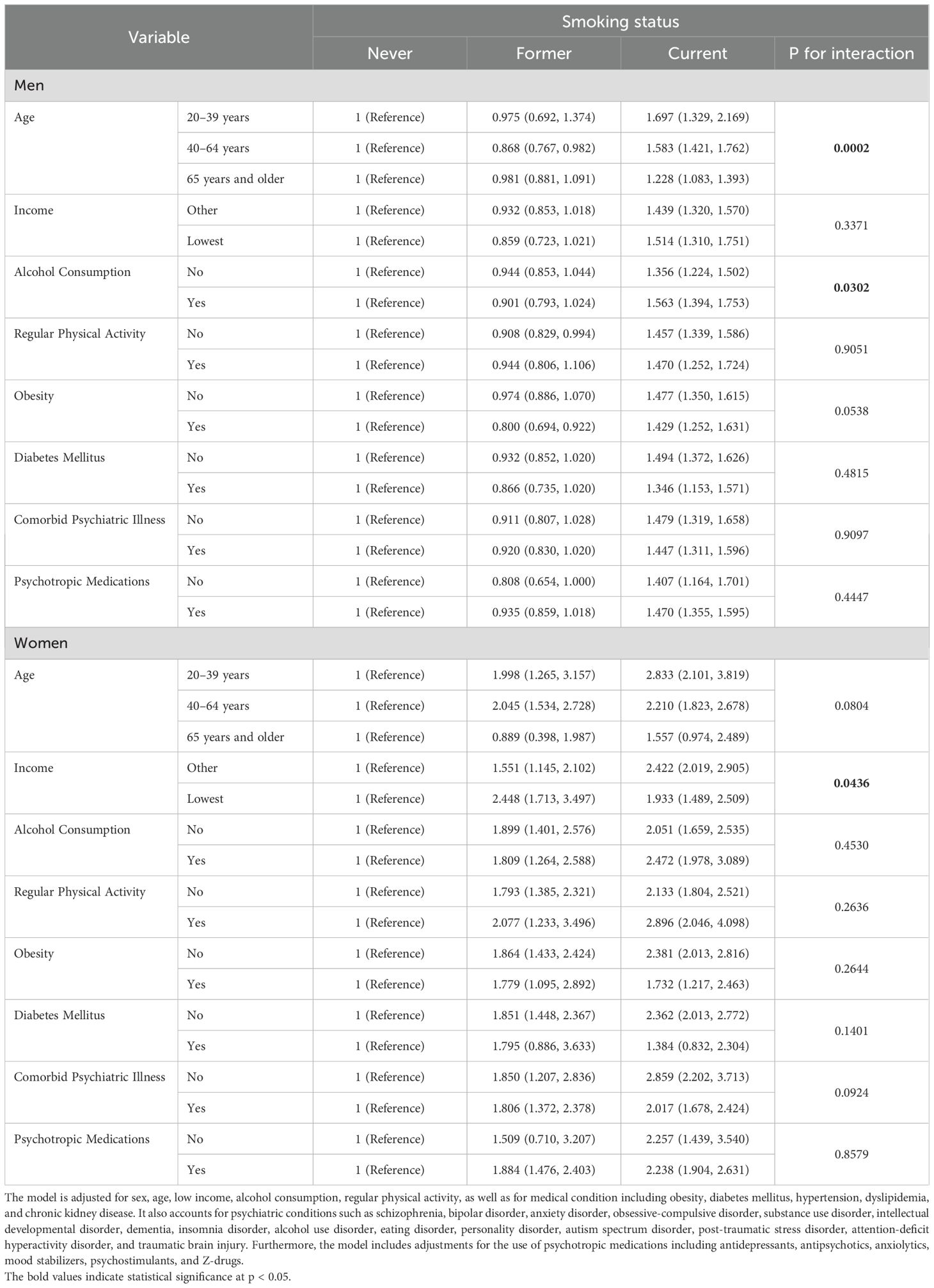 3.3 Sex differences in effect modification of covariates on the association between smoking status and suicide risk in depression
