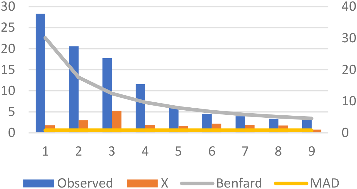 To systematically detect potential reporting anomalies and overdiagnosis patterns, we employ Benford’s Law, which has proven effective in healthcare fraud detection (2729) and identifying fabricated data in scientific research that subsequently led to retractions (30). The law is particularly suited for autism prevalence data as it naturally spans multiple orders of magnitude across countries, a key requirement for Benford’s Law applicability (31), and can detect systematic reporting bias when external incentives influence diagnostic patterns (32). Probing deeper into this proposition, we examined the correlation between the growth pattern of autism cases and the influx of health-related aid, which exposed a significant connection. This nuanced analysis sheds light on the interplay of factors prompting the identification and reporting of autism cases on a global scale. Our contribution centers around a comprehensive inspection of reported autism cases across 206 countries from 1990 to 2019, marking the first wide-ranging analysis for potential anomalies and overdiagnosis in this extensive panel data approach. Leveraging statistical methodologies such as Benford’s Law (28) and Mean Absolute Deviation (MAD) (33), we systematically examined the dataset to reveal previously unexplored insights. Building upon previous research that underscores the overdiagnosis of autism spectrum disorder (ASD) due to shared symptomology, heightened awareness, and exclusive ASD-specific services (22, 3439), we extend this argument through a unique comparative lens.