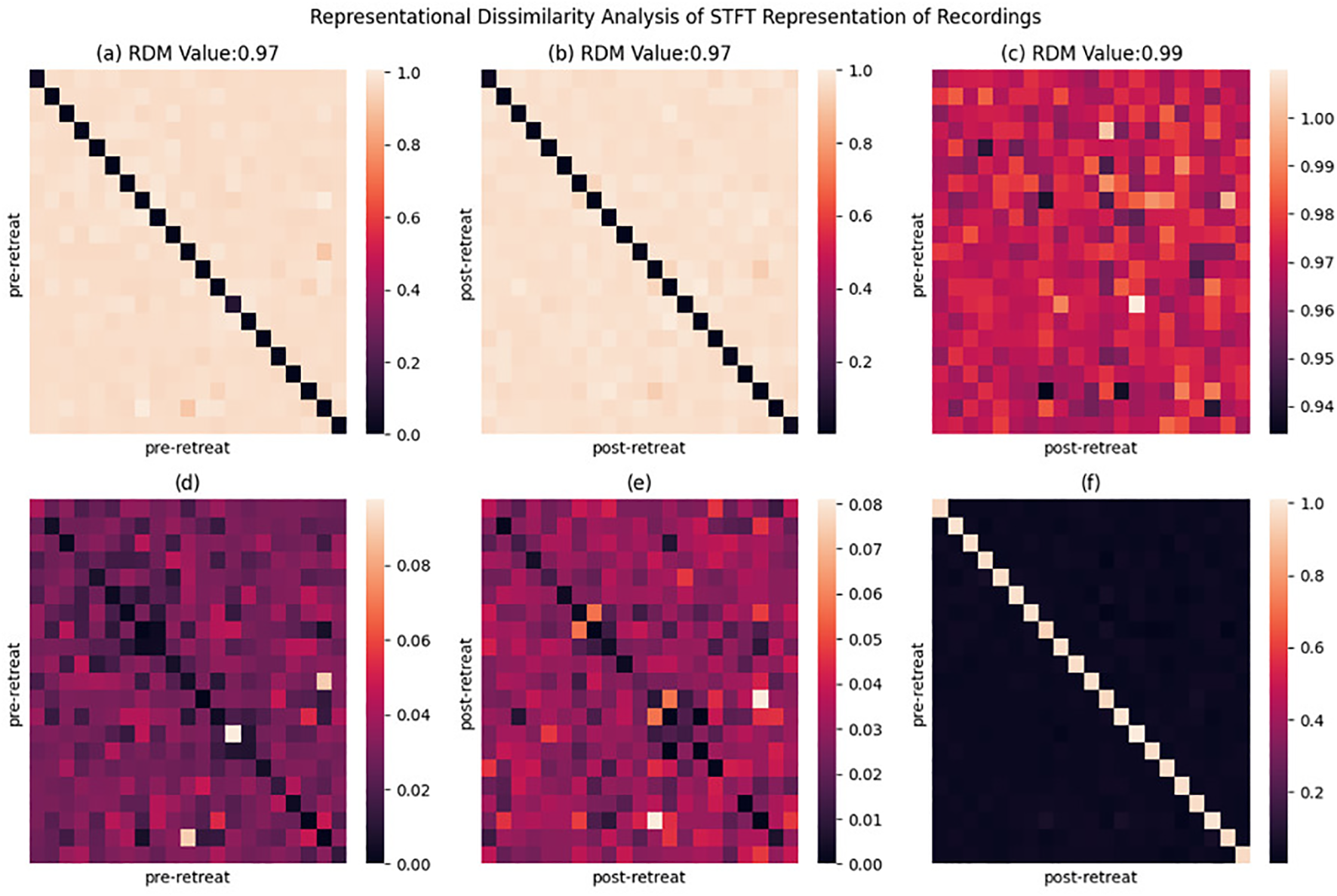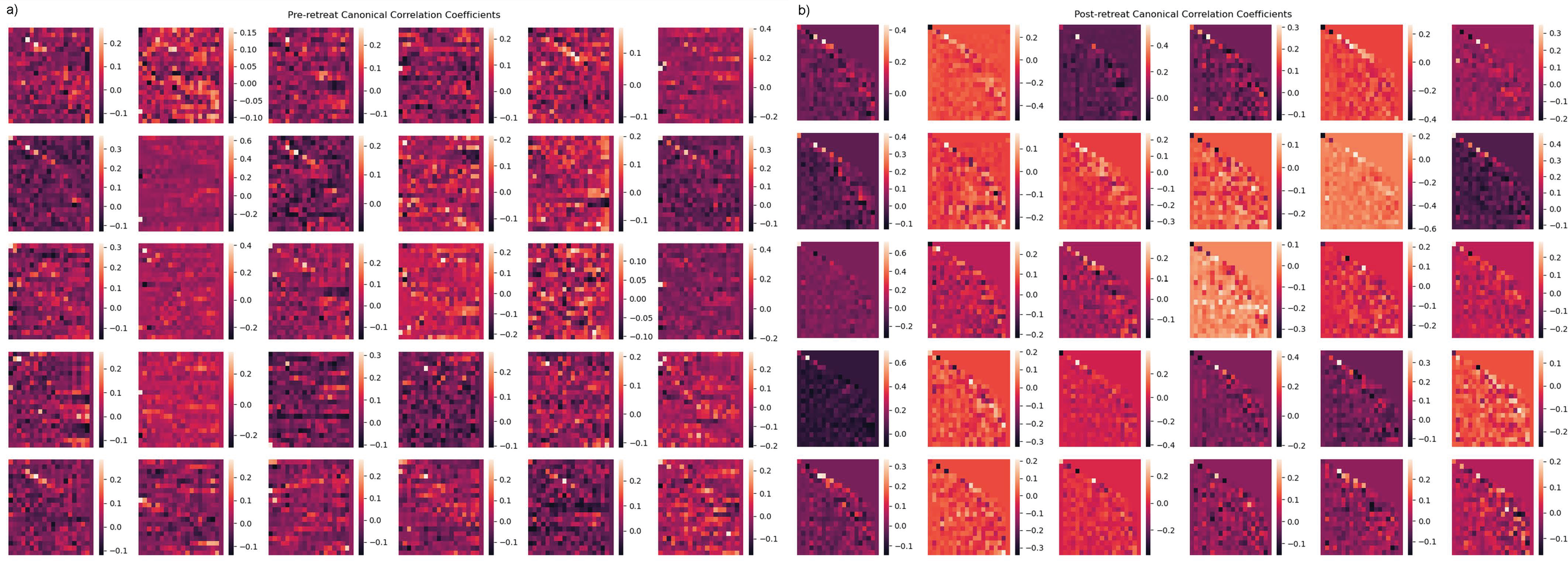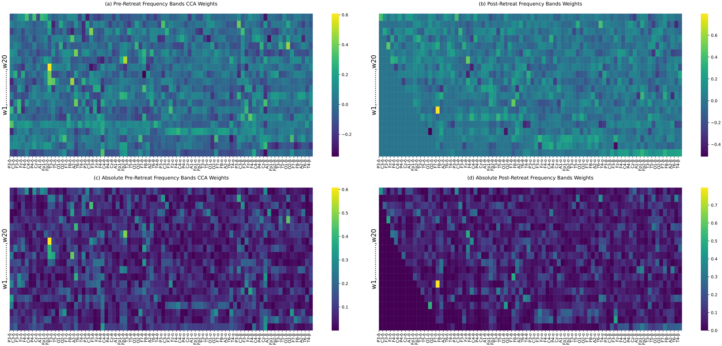 Resting state EEG data were collected at the retreat site in Jamaica pre- and post-psilocybin use to assess changes in brain function. All resting-state measurements were conducted with participants seated facing a blank wall, instructed to keep their eyes open throughout the session. EEG recordings were taken using a dry cap with 19 electrodes and 2 reference electrodes, following the 10/20 international system during resting state. The first EEG recording occurred on day one of the retreat before any psilocybin administration, and the second on the final day of the retreat, over 36 hours from the final ceremony. This data aimed to provide insights into changes in brain connectivity and functional dynamics following psilocybin therapy.