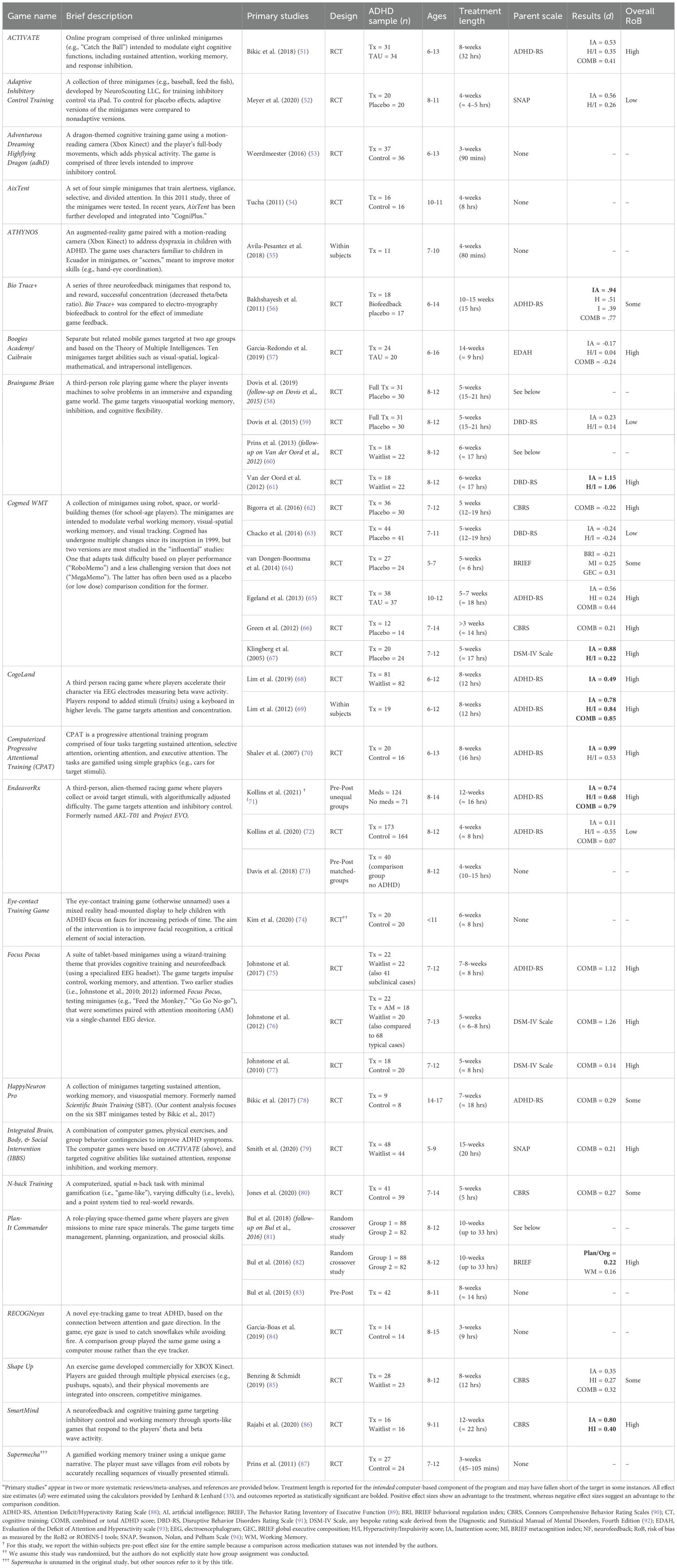 Table 1. Summary of influential game studies for children with ADHD and immediate parent-reported treatment effects.