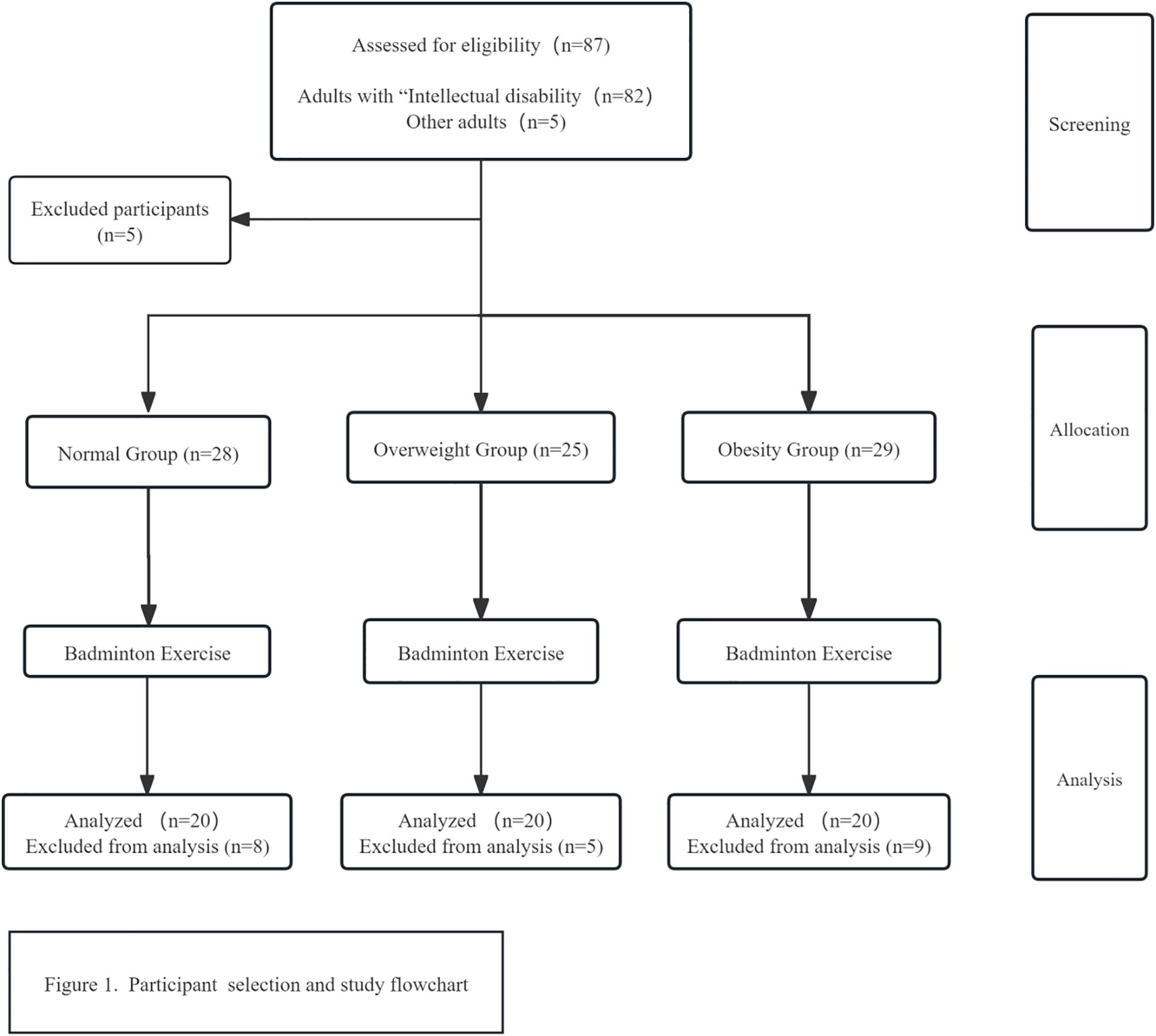 Therefore, this study compared the effects of badminton exercise on indices of health-related physical fitness across BMI categories (normal weight, overweight, and obesity groups) among adults with ID to identify optimal intervention outcomes.