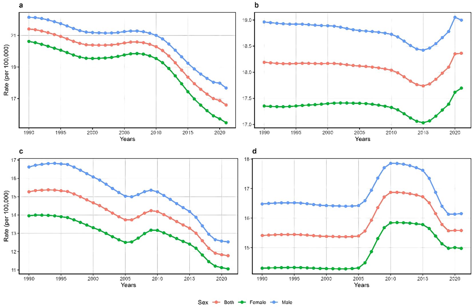 We acknowledge the Global Burden of Disease Study 2021 collaborators for their work in producing the estimates used in this analysis. We express our gratitude to the developers of the Age–Period–Cohort Analysis Tool v0.2. And we also wish to thank the reviewers whose suggestions helped improve this manuscript.