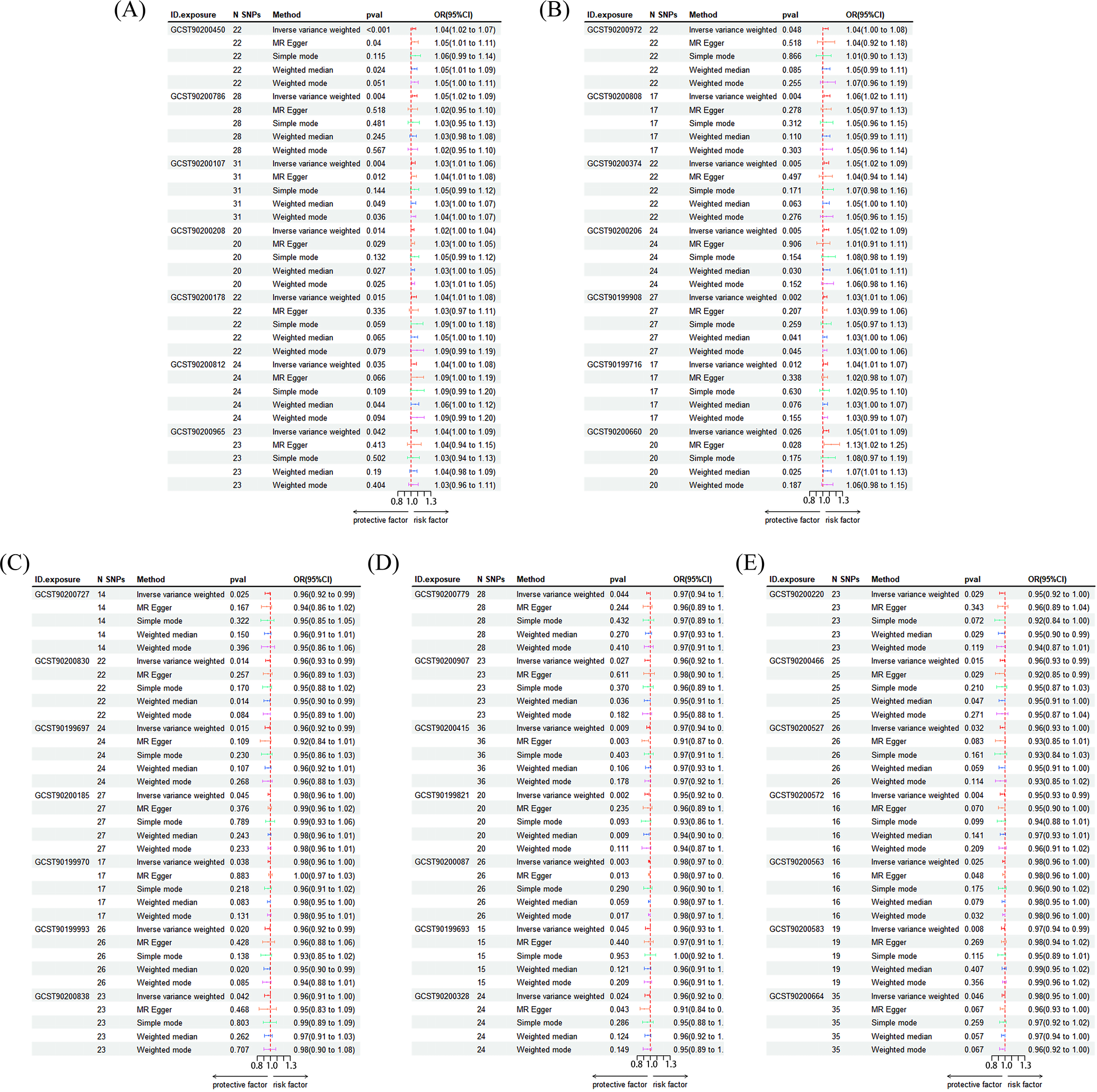 In this study, the causal relationship between metabolites and depression was assessed using the standard inverse variance weighting (IVW) method. This is a commonly used and robust technique for estimating causal effects, which accurately estimates the causal effect of exposure (metabolites) on the outcome (depression) when the instrumental variables satisfy all the core assumptions (22). To further validate the robustness of the results, the MR-Egger and weighted median (WM) methods were used as secondary assessment tools. These methods can provide complementary results to the IVW methods and help identify possible biases. Mendelian randomization analyses were conducted in the R environment using the TwoSampleMR package (version 0.6.16) and the Mendelian Randomization package (version 0.10.0), ensuring consistent and reproducible implementation of the analytical pipeline. After KEGG database matching, all metabolites with possible causality were included in the high-association metabolite pool.