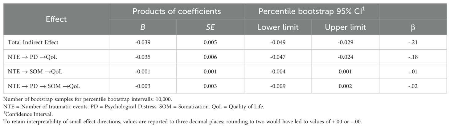 Table 3. Specific indirect effects of number of traumatic events through psychological distress and somatization on quality of life.