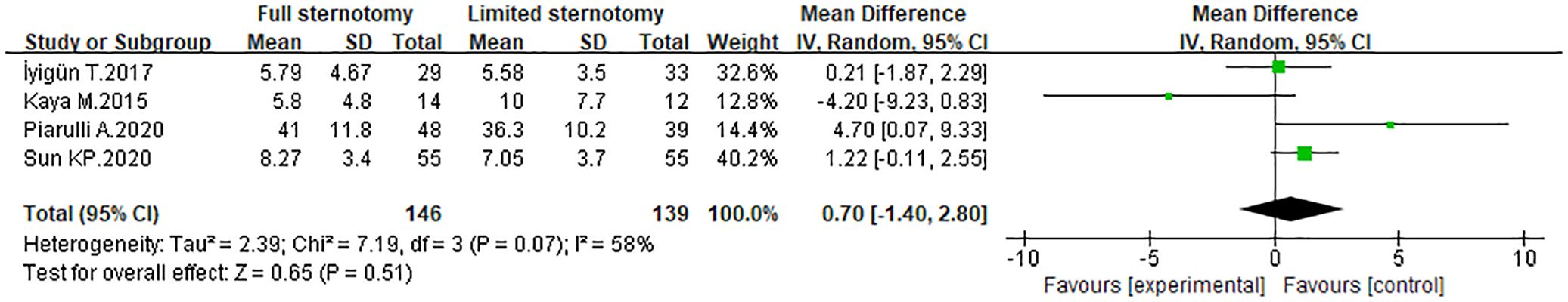 Figure 6. Forest map of anxiety scores between the full sternotomy group and the limited sternotomy group after cardiac surgery.
