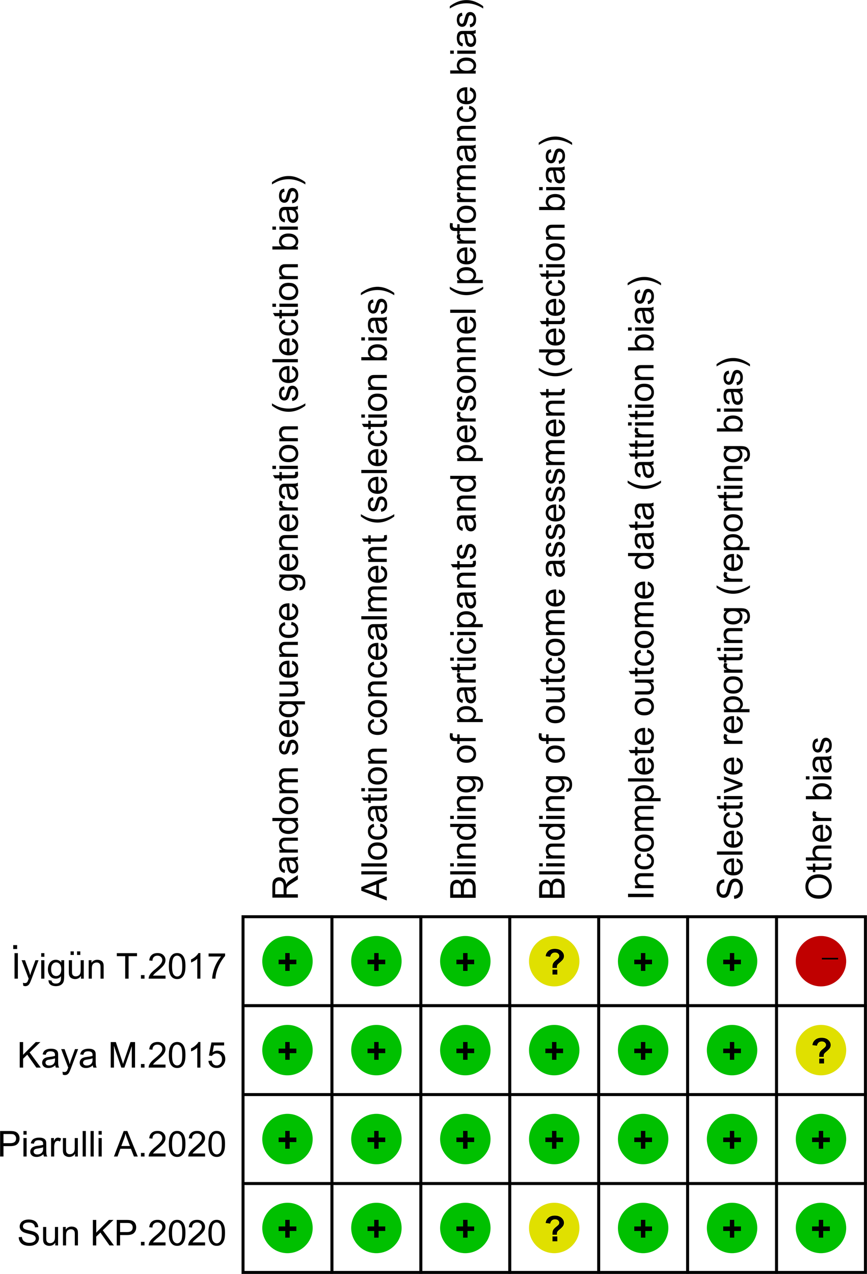 | Publication | Kaya M.2015 | İyigün T.2017 | Piarulli A.2020 | Sun KP.2020 | |