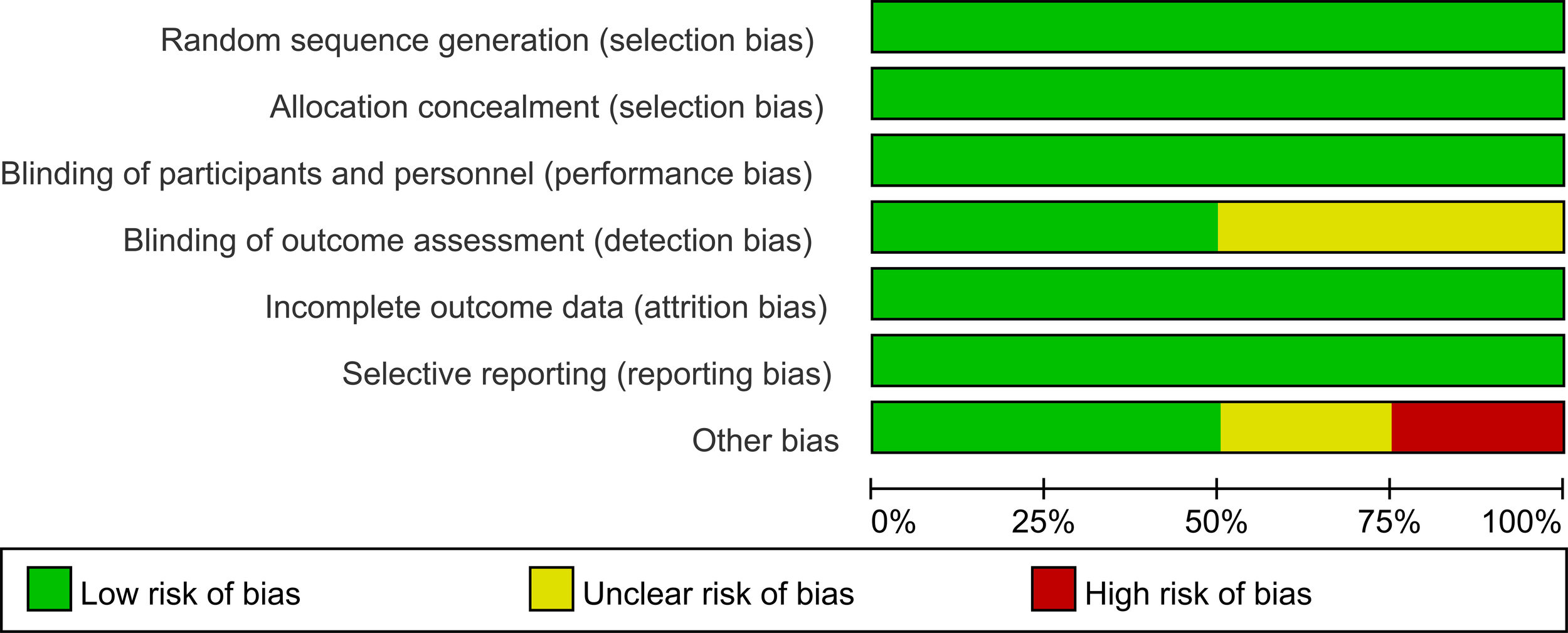 The literature was managed using Endnote X9 (Clarivate, London, UK), and studies that were irrelevant, duplicates, or non-experimental (especially those based on animals) were excluded. Following this, the titles and abstracts were carefully reviewed to eliminate studies that did not meet the inclusion criteria. The remaining literature was examined in detail, ensuring a thorough and systematic process. The full texts of the identified studies were reviewed for a secondary screening, and any disagreements were settled through consensus discussions among three researchers. Two researchers assessed the quality of the literature independently using the Cochrane bias tool.