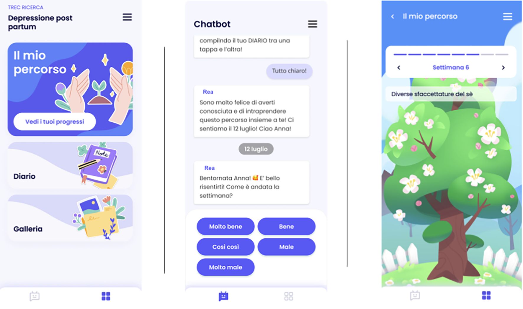 This study aims to investigate and evaluate women’s experience and engagement with the TreC Mamma App and the virtual coach REA and assess the level of pre-post psychological well-being.