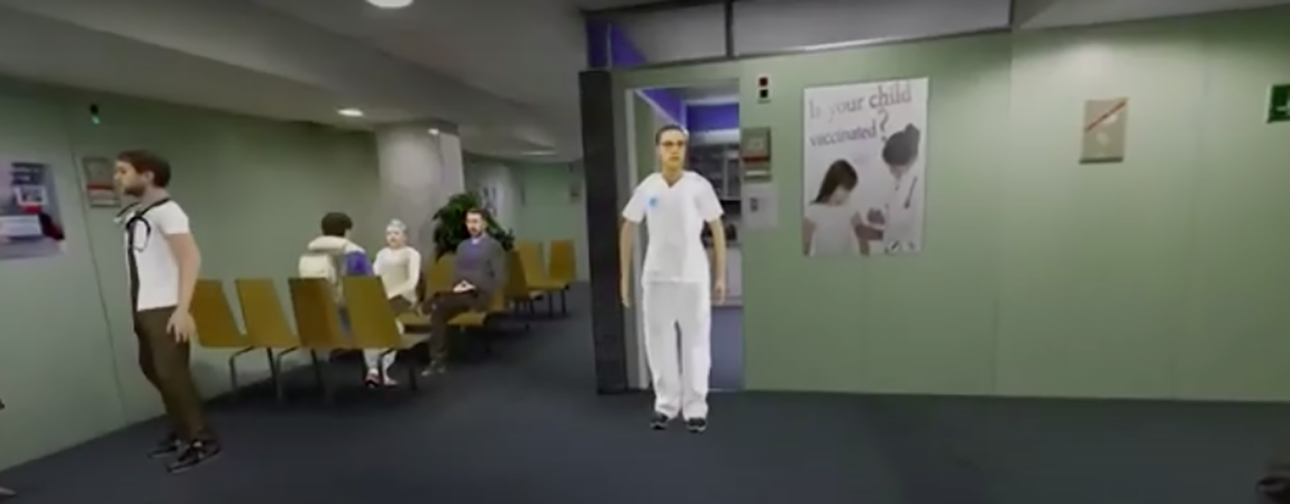 The VR environment we used was developed by Amelia by XRHealth. The participants engaged in an environment depicting a medical clinic (Figure 2).