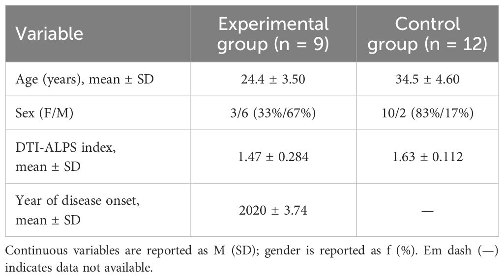 Moreover, the study was insufficiently powered to include multiple covariates, such as gender, although clinically relevant, that could not be added without over-fitting. We prioritized age over gender because its empirical influence on ALPS is well established (38), yet acknowledge that omitting gender is a residual source of bias. Future studies need to use strict age- and sex-matching or propensity-score weighting to balance both covariates simultaneously.