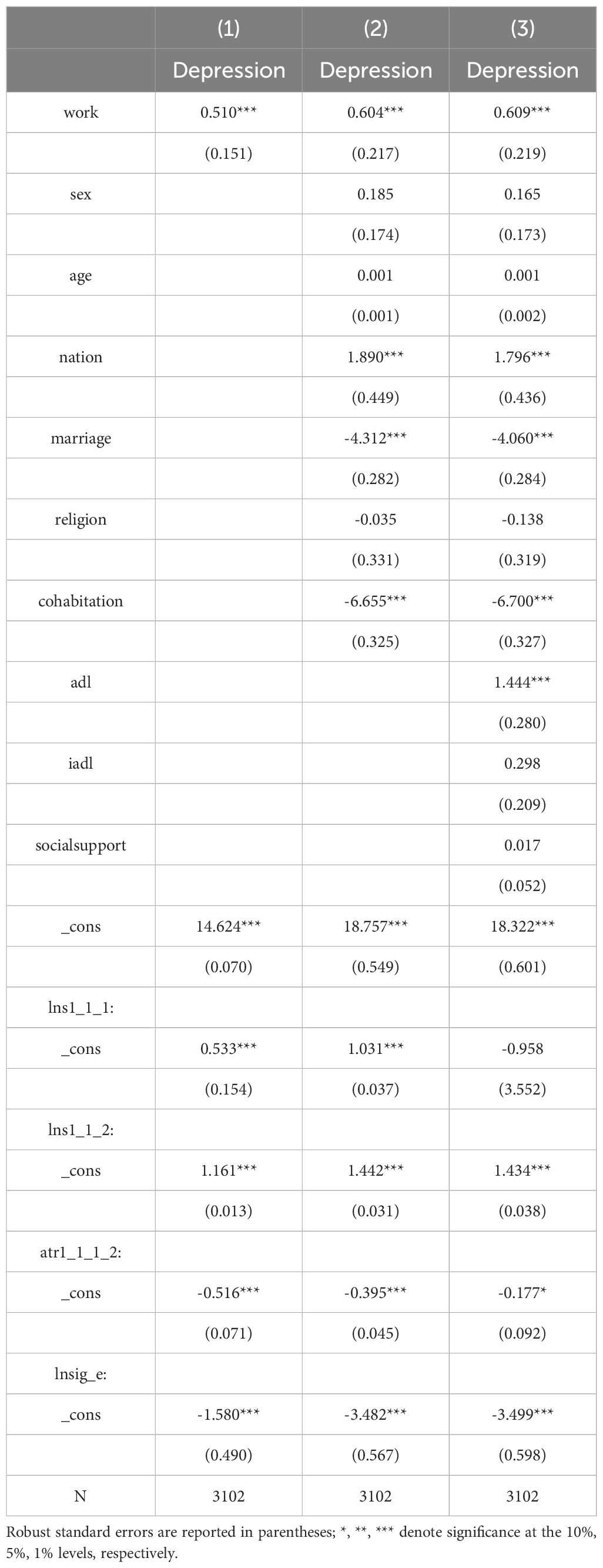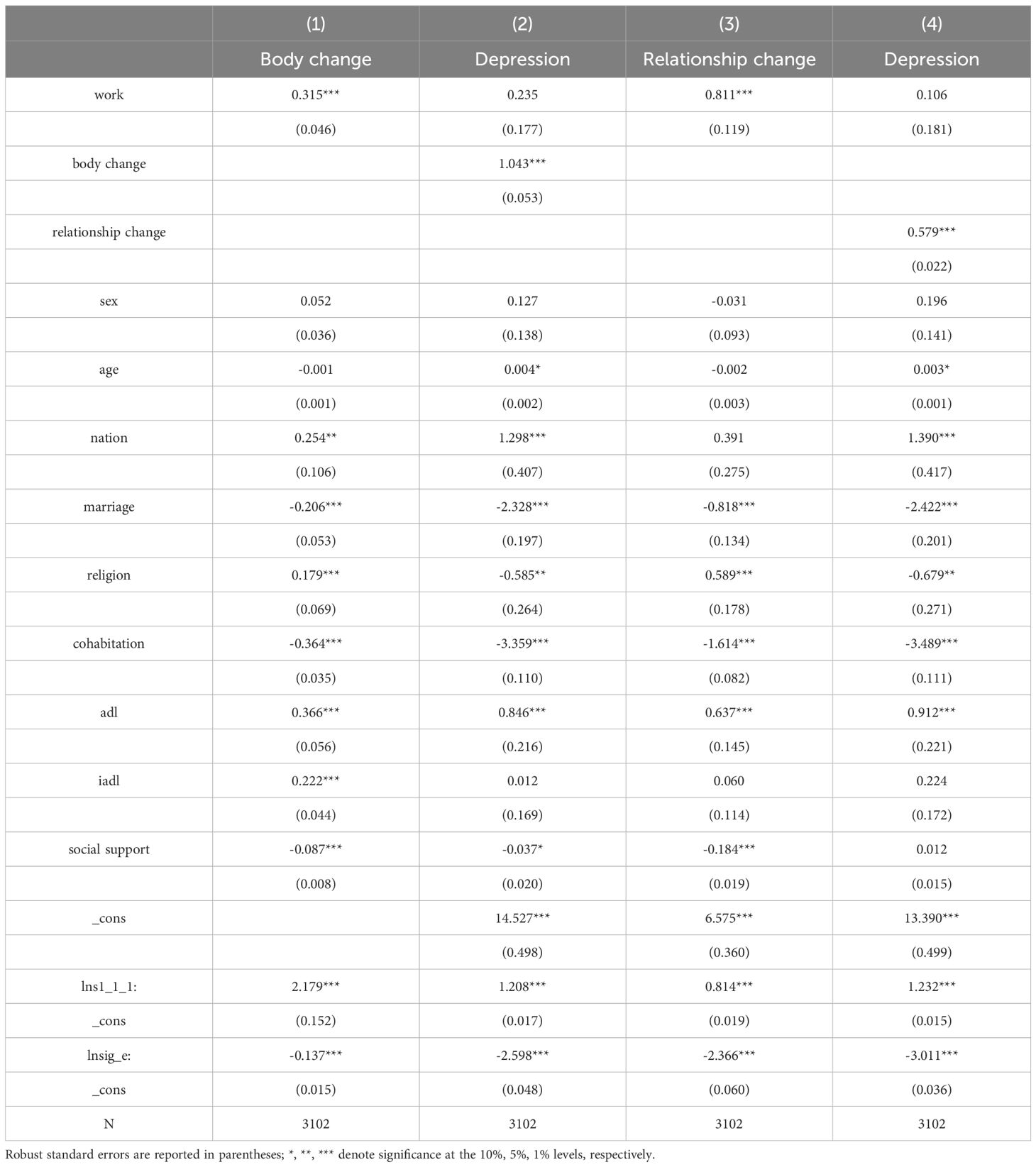 Building on the above findings, changes in physical health and social relationships before and after retirement may partially explain the elevated depression levels observed among retired Danwei leaders. To examine these potential mechanisms, this study adopts the stepwise regression method proposed by Wen et al. (47). The detailed regression results are presented in Table 10.