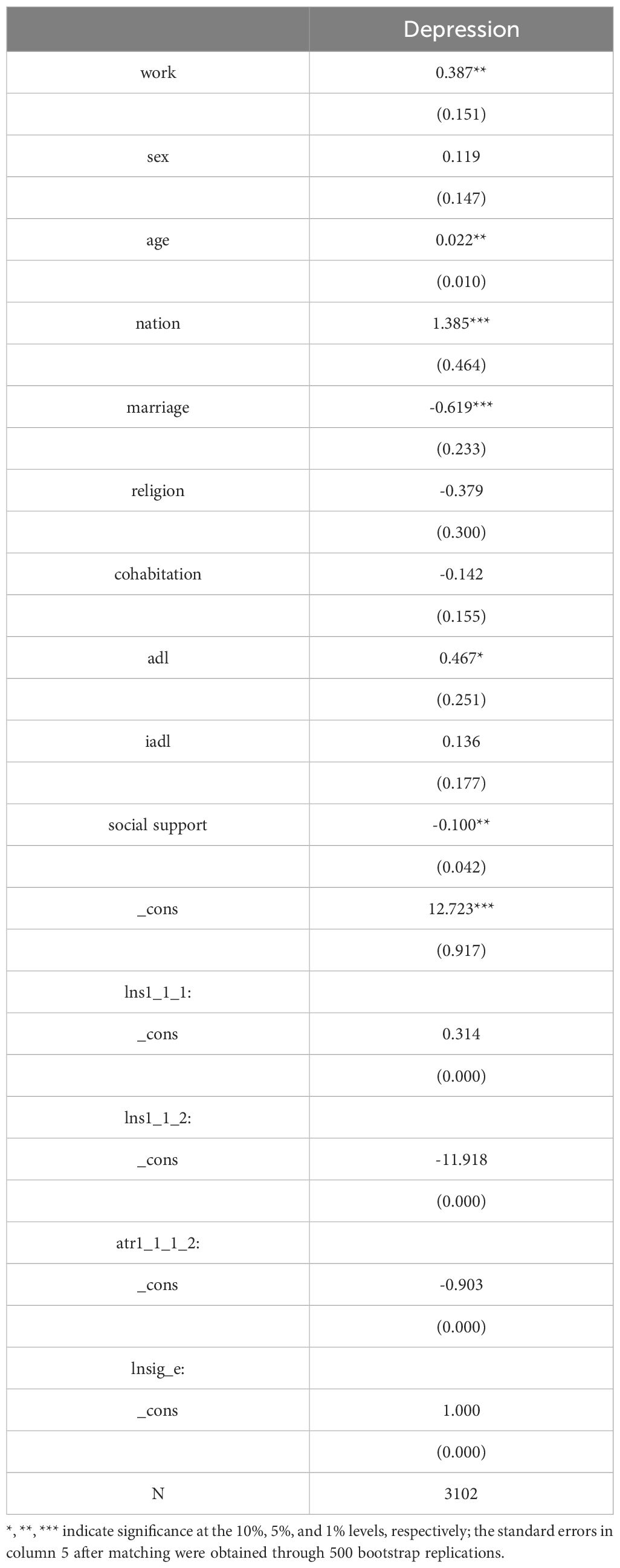 In terms of exogeneity, any direct effect of sector type on depression would primarily operate through cumulative work environment effects, social support structures, and family patterns. However, these influences are mitigated by controlling for health, social capital, and demographic covariates. Institutionally, leaders in both public and non-public sectors enjoyed similar high status and resource advantages prior to retirement (45), and the core challenge they faced was identity transformation and status decline after retirement. Sector type therefore serves mainly as an identifier of “work-unit leadership” and does not directly affect depression.