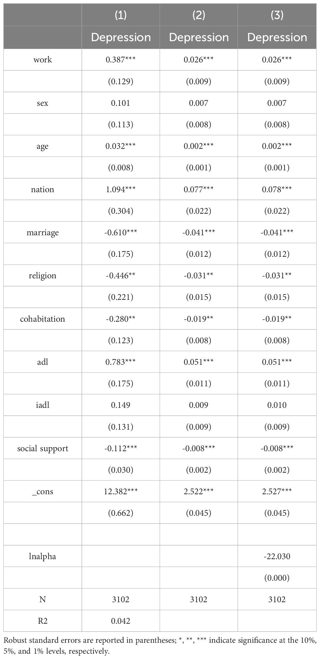 The control variables also yield informative insights. At the demographic level, gender, religious belief, and number of children are not significantly associated with depression levels. However, older individuals tend to report higher levels of depression. Members of the Han ethnic majority exhibit significantly higher depression levels than ethnic minorities. Being married and having fewer children are both associated with significantly lower depression levels.