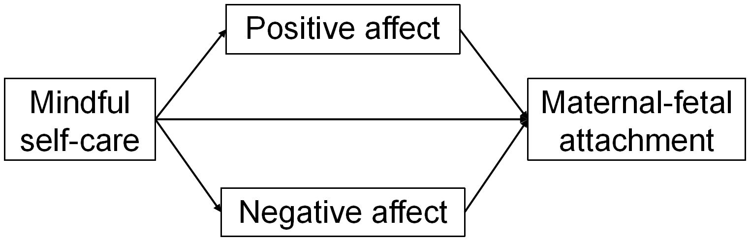 Objective: To investigate the relationship between mindful self-care and maternal-fetal attachment (MFA) and parallel mediating effects of positive and negative affect among pregnant women.