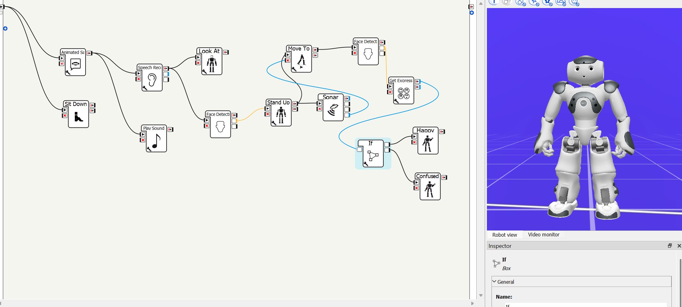 Figure 1. Choregraphe screen with a simple loaded program. Visual workflows can easily become confusing for complex robot routines.