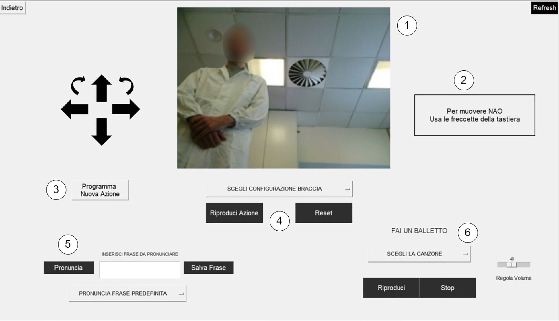 The name for this modality is inspired by the term “puppet,” as the NAO robot is fully controlled by the doctor via a graphical interface. This interface is structured as a command console comprising the following components portrayed in Figure 3: