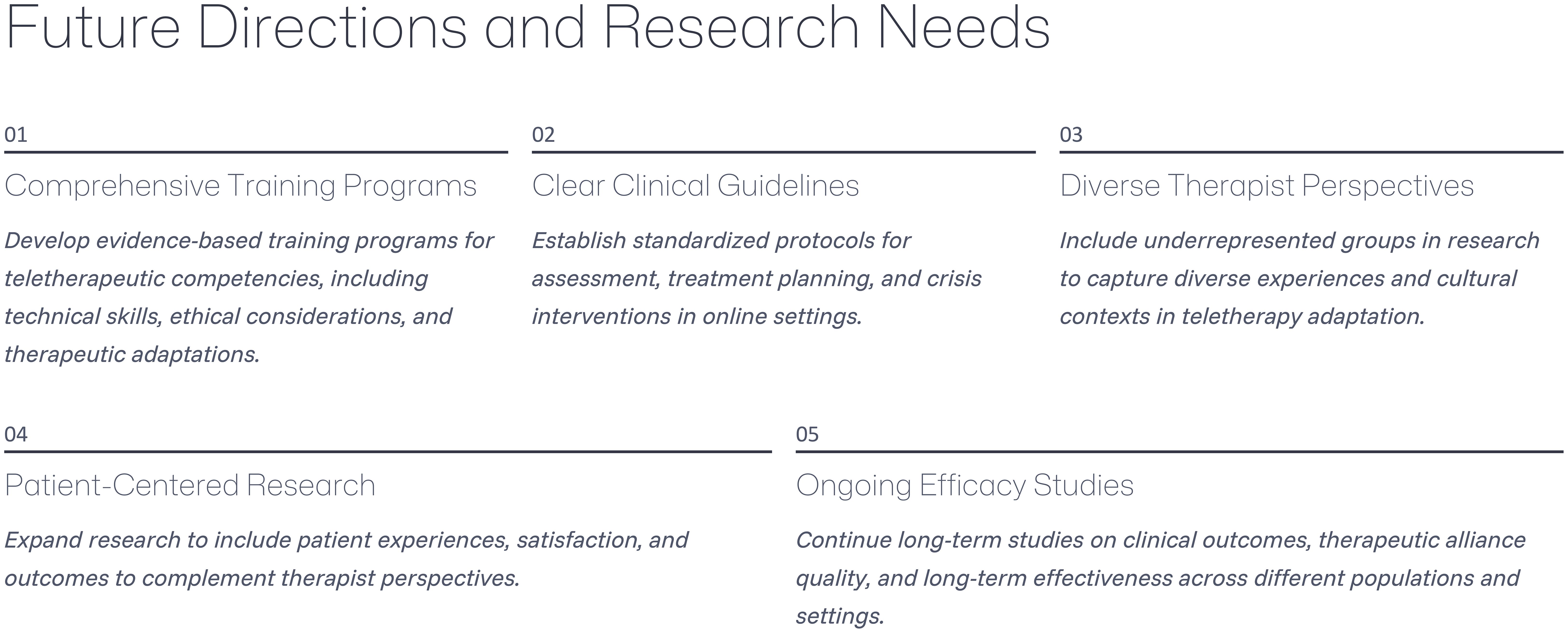 Nevertheless, despite the benefits and opportunities offered by online psychotherapy, psychotherapists and researchers point out the limitations of this form of work, among others: reduced communication quality or session disruptions due to unstable internet connections or inadequate equipment on any site either therapists and clients (11, 14, 15); concerns regarding privacy and session confidentiality (9, 13, 16), challenges in interpreting nonverbal cues – reduced image quality and limited camera frames impede observation of facial expressions, gestures and posture, complicating emotional assessment and intervention selection (11, 14). In addition, therapists report the inability to employ “physical” tools, such as sticky notes, play therapy toys or art materials (13, 14). Many clients also report screen fatigue and perceived relational distance, which may diminish the authenticity of the therapeutic connection (17–19). Finally, there are ethical dilemmas concerning recording storage, data protection and the therapist’s duty of care when clients are located in jurisdictions different from the therapist’s practice (12). These analyses demonstrate that psychotherapists recognize the benefits of online therapy, but also acknowledge the limitations (20).