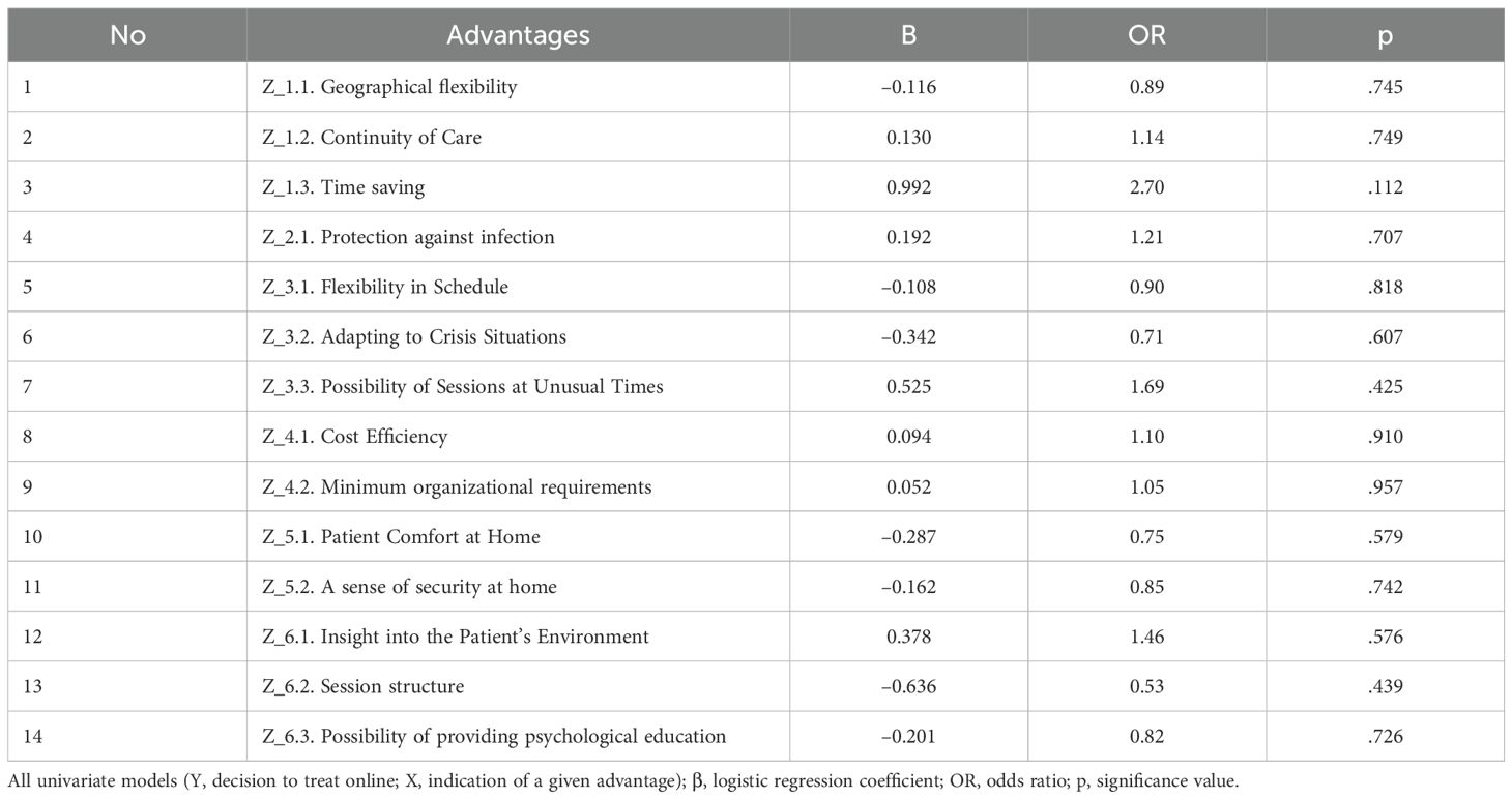 In accordance with the adopted research model and research questions, the qualitative analysis is presented first, i.e. an analysis of the advantages and disadvantages of online therapy perceived by psychotherapists. In the next part, the quantitative analysis is presented in two stages: first, the advantages of online therapy, followed by its disadvantages, each examined in the context of all analyzed variables and their interrelationships.