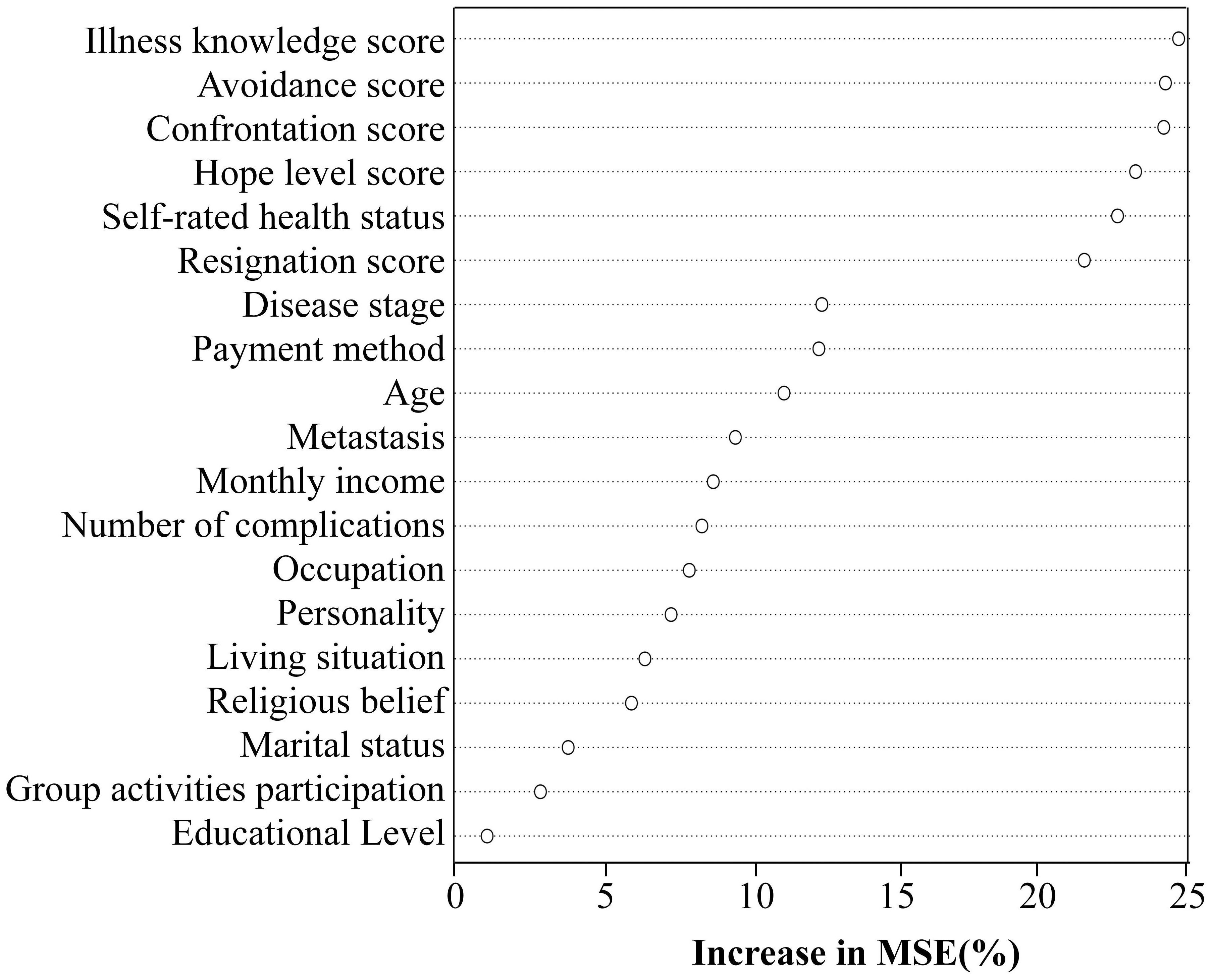Figure 4. Variable importance ranking of influencing factors for self-transcendence in gastric cancer patients undergoing chemotherapy.