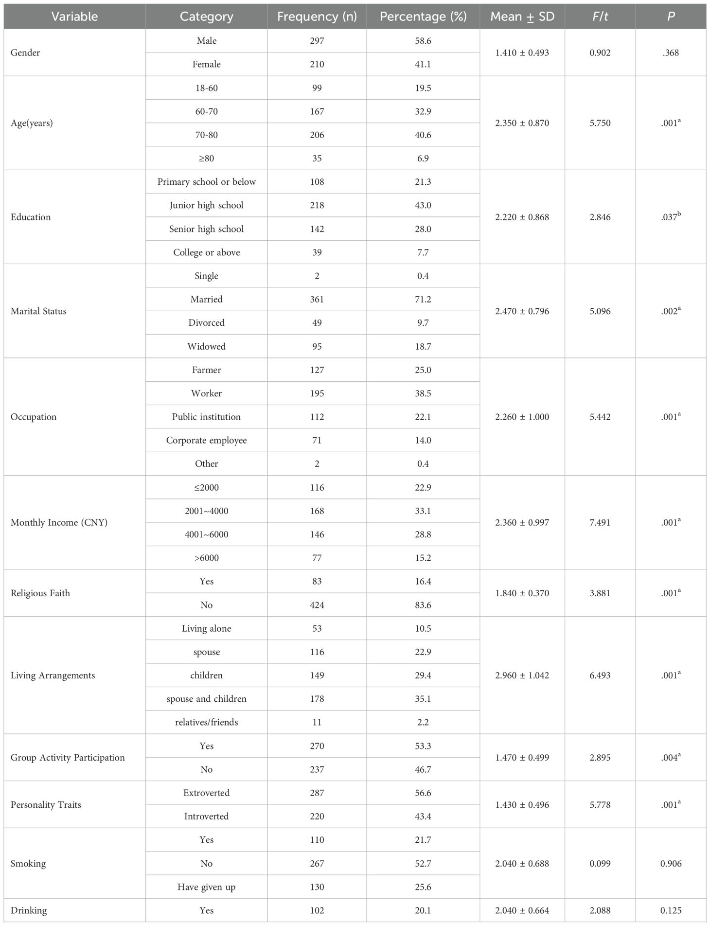 Table 1. Social-demographic characteristics of participants and comparison of different variables on Self-Transcendence (N = 507).