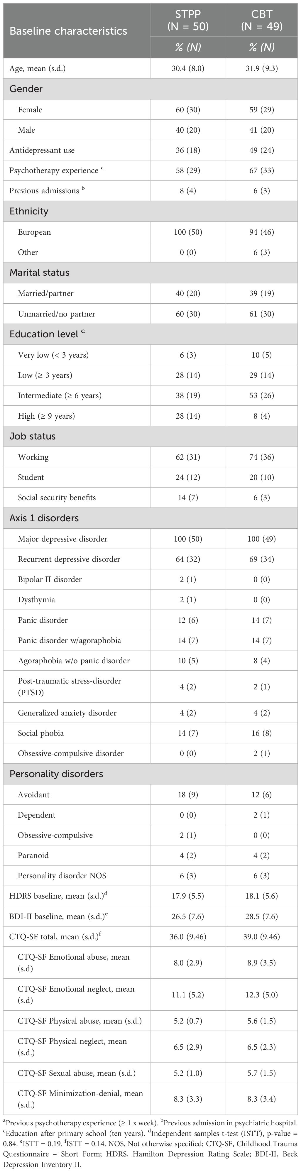 Table 1. Demographic and clinical characteristics of the patient sample, stratified by short-term psychodynamic psychotherapy (STPP) and cognitive behavioral therapy (CBT).