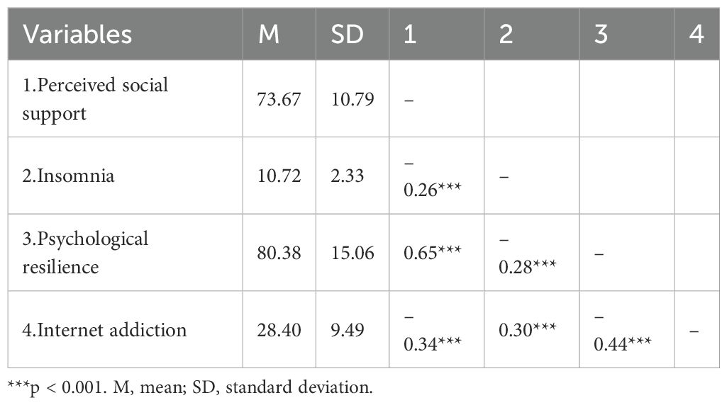 Keywords: perceived social support, insomnia, psychological resilience, internet addiction, chain mediation