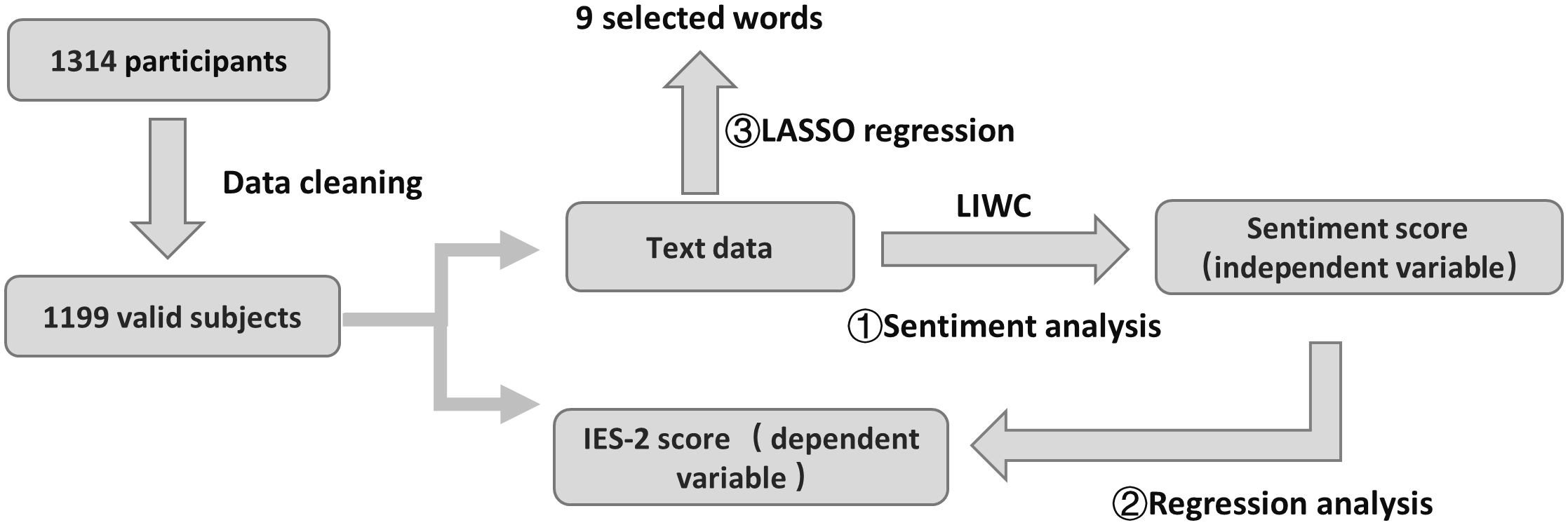 Building upon the emotional and thematic patterns identified in Study 1—particularly those highlighting the interplay between social emotions, stress, and dietary behaviors—Study 2 extends this line of inquiry to an individual behavioral level. Specifically, Study 2 systematically investigates the mechanistic links between social emotional states and intuitive eating behaviors, while identifying semantically salient markers associated with eating patterns through advanced text feature extraction. The three-stage analytical protocol (see Figure 2) unfolds as follows: