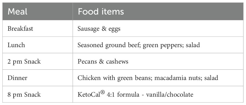 The patient was monitored by hospital staff for meal consumption on the in-patient unit and was reported to be adherent to KD, consuming only prescribed food, and finishing all or most of every meal (one-day menu in Appendix A). The participant was motivated to adhere to the diet, tolerated it well, and reported, “It’s something I have gotten used to and feel it made a positive change.”